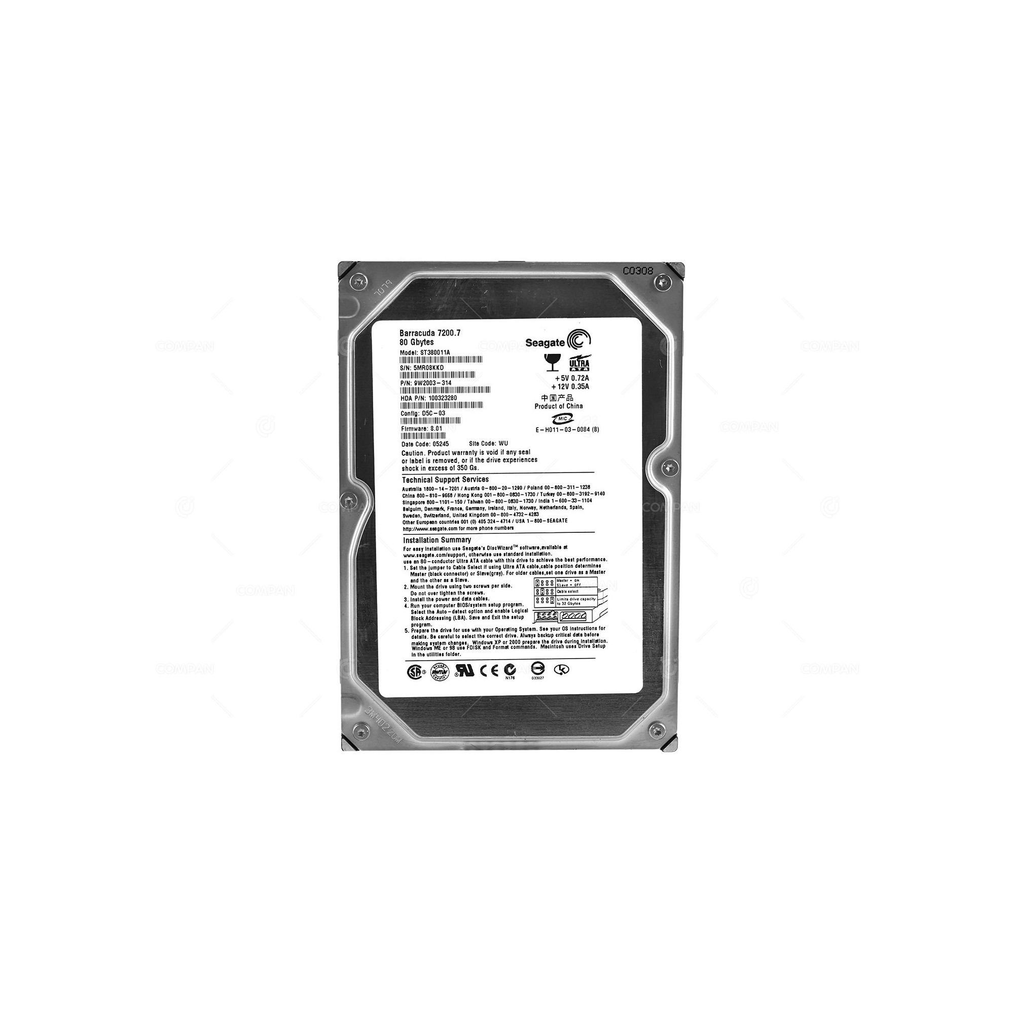 ST380011A SEAGATE HARD DRIVE 80GB 7.2K 3.5 LFF ULTRA ATA 9W2003-314, 100316760