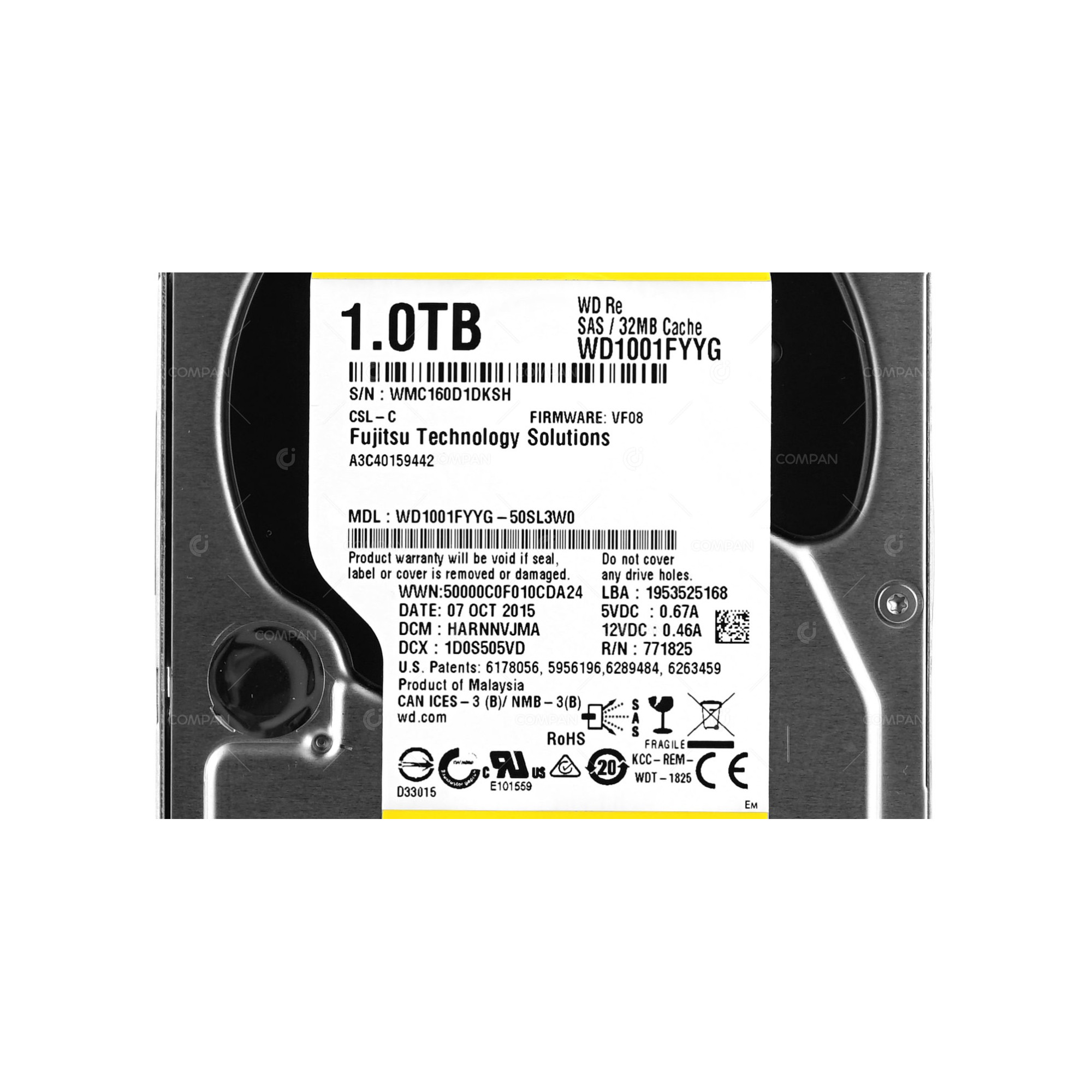 A3C40159442 FUJITSU HARD DRIVE 1TB 7.2K 6G SAS 32MB CACHE 3.5 LFF FOR PRIMERGY WD1001FYYG, WD1001FYYG-50SL3W0