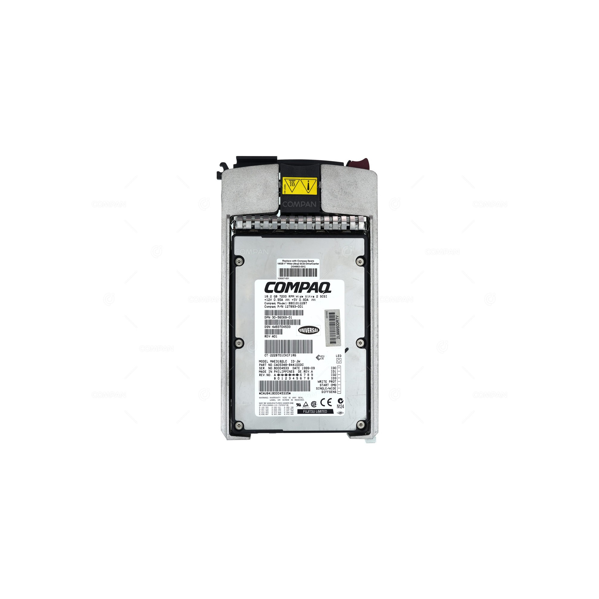 104663-001 HP COMPAQ HARD DRIVE 18.2GB 7200 RPM WIDE ULTRA 2 SCSI 3.5 30-56069-01, 400739-B21