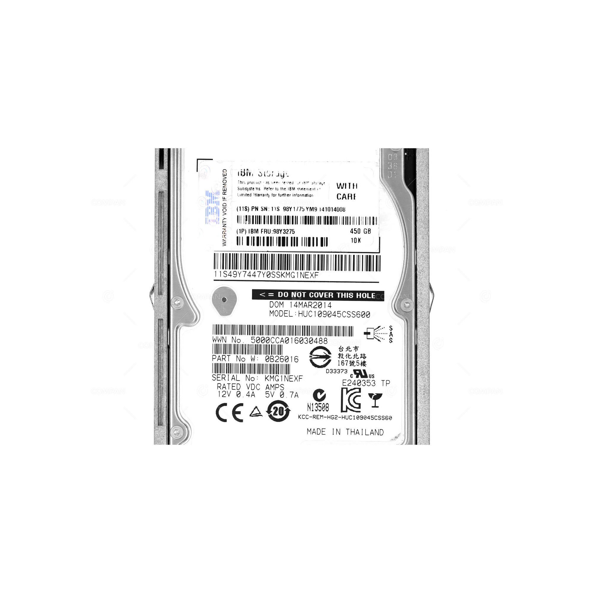 98Y3275 IBM HARD DRIVE 450GB 10K 6G 2.5 SAS SFF SED HOT-SWAP 98Y1775