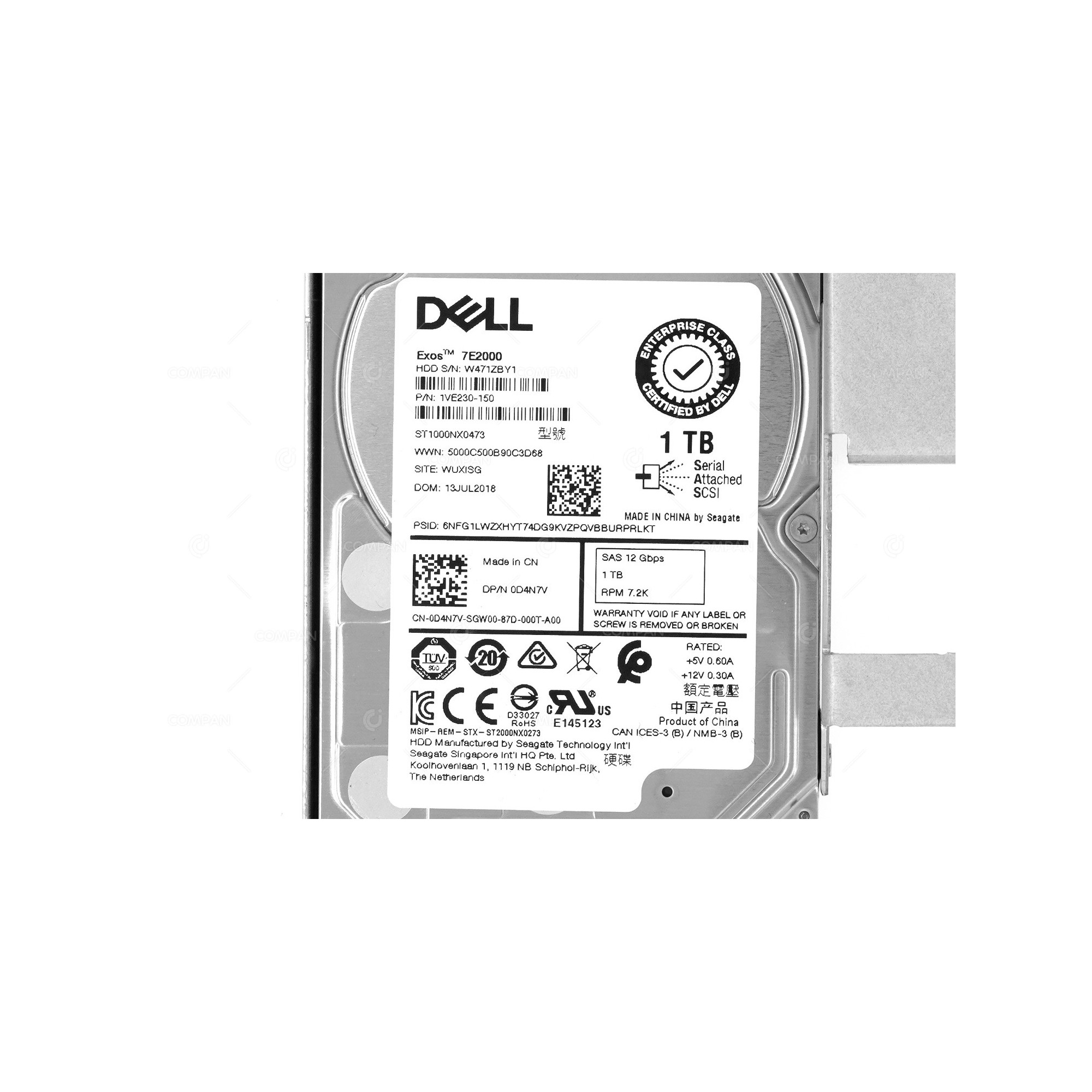 D4N7V G14 DELL HARD DRIVE 1TB 7.2K 12G 2.5 IN 3.5 SAS FOR G14 0D4N7V, ST1000NX0473