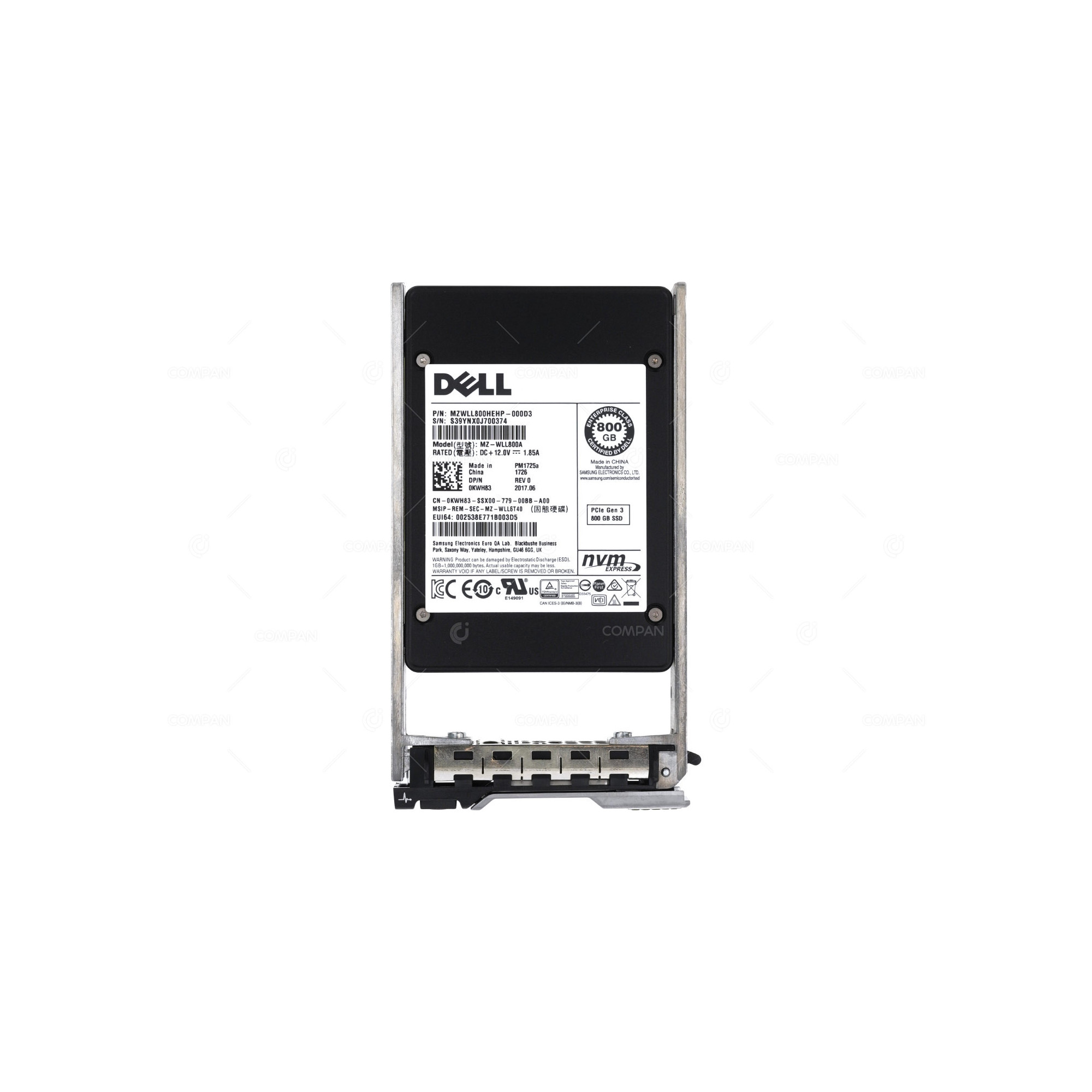 KWH83 DELL 800GB PCIE NVME SSD U2 TLC MU MIXED USE FOR G13 0KWH83, MZ-WLL800A,