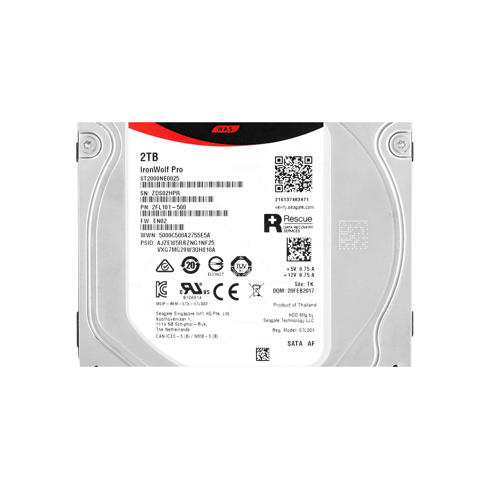 ST2000NE0025 SEAGATE IRONWOLF NAS 2TB 3.5 LFF 512 7.2K 6G SATA 128MB CACHE HARD DRIVE 2FL101-500