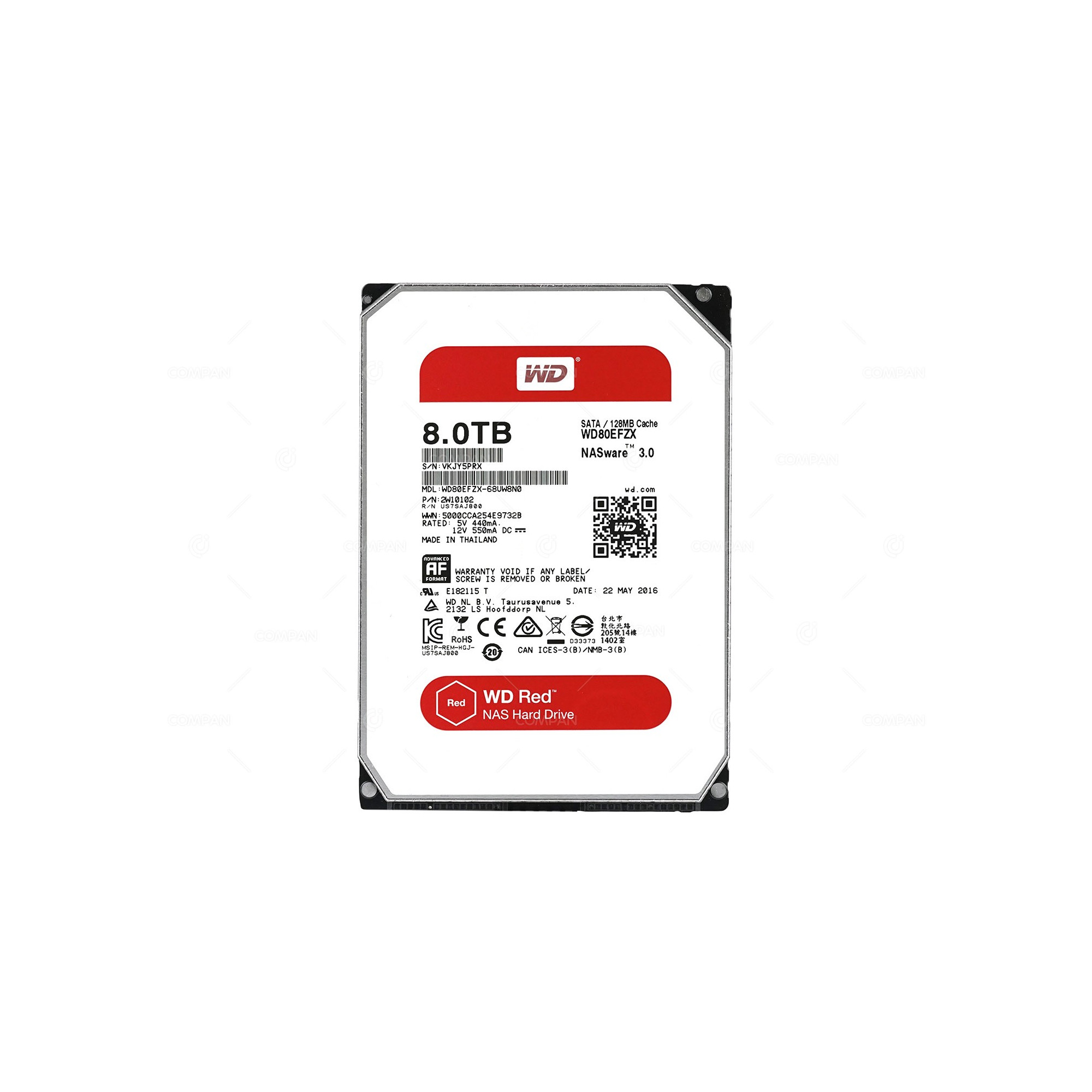 WD80EFZX WD HARD DRIVE 8TB 5.4RPM 6G SATA III 128MB NASWARE 3.0 3.5 LFF WD80EFZX-68UW8N0, 2W10102