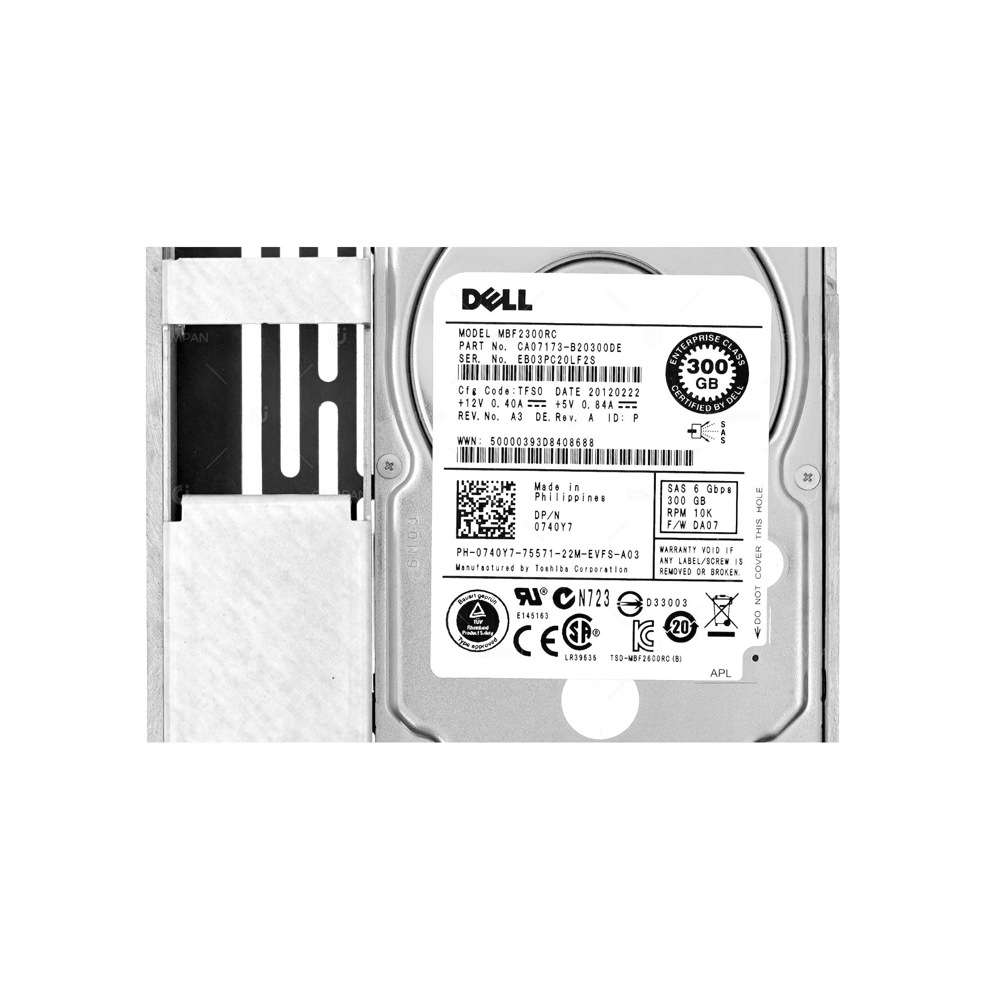 740Y7 LFF DELL HARD DRIVE 300GB 10K 6G SAS 2.5 SFF IN 3.5 LFF HOT-SWAP G11 G12 G13