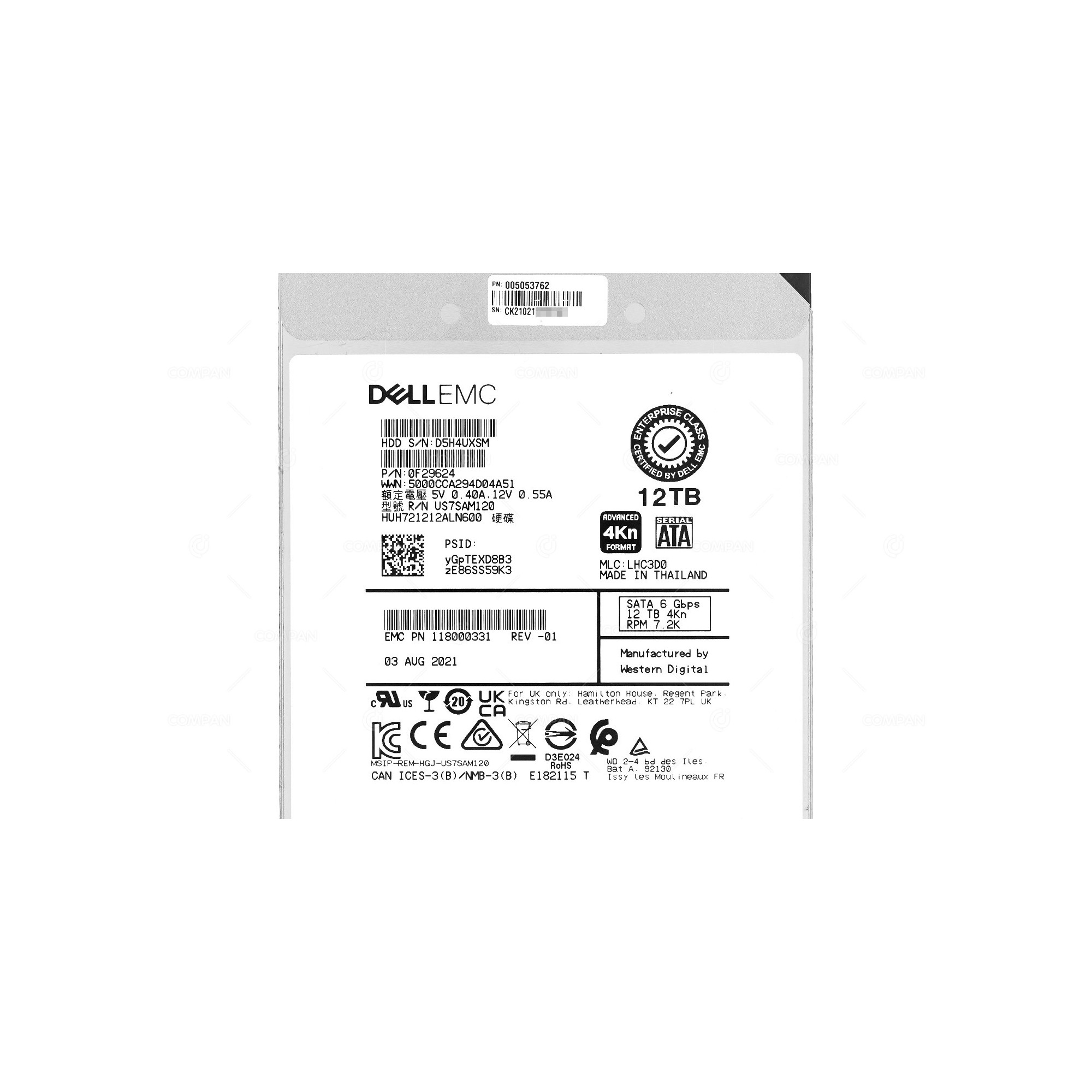 005053762 EMC HDD 12TB 7.2K SATA 6G 3.5" LFF FOR ISILON A2000
