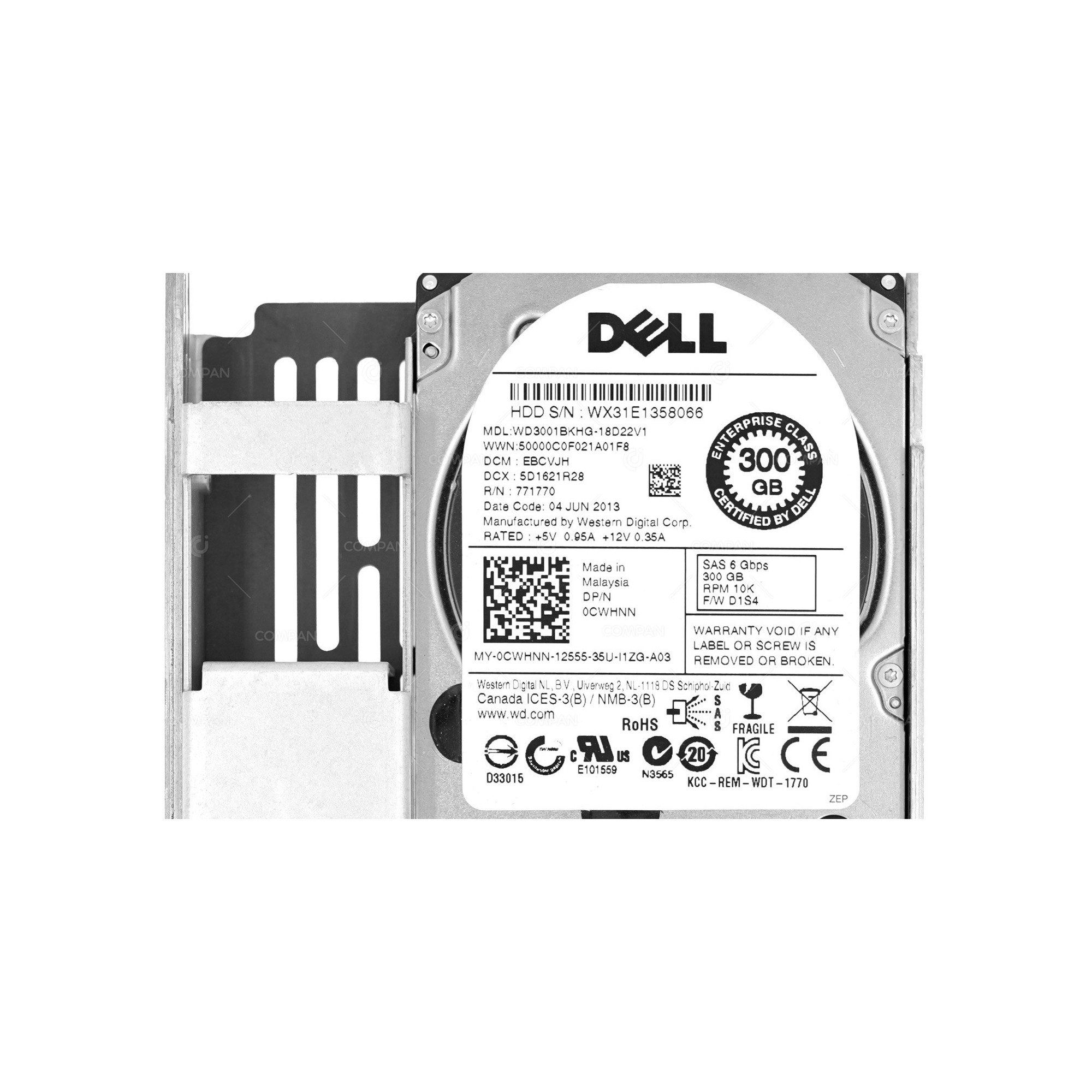 CWHNN LFF DELL HARD DRIVE 300GB 10K 6G SAS 2.5 SFF IN 3.5 LFF HOT-SWAP G11 G12 G13