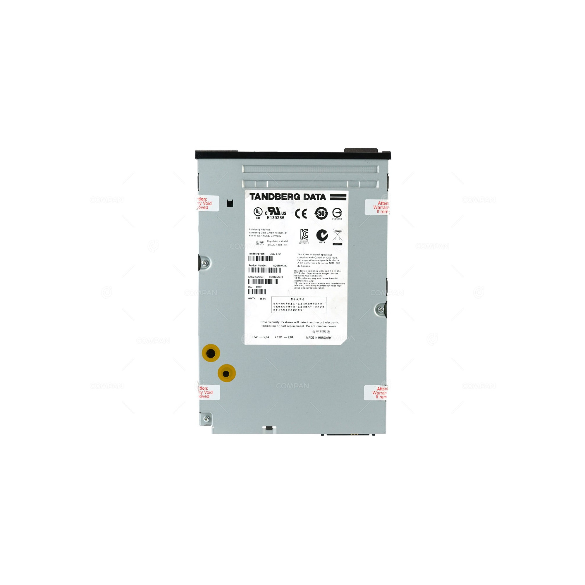 3533-LTO-FAULTY TANDBERG DATA LTO-6 HH 2.5TB/6.25TB SAS EXTERNALTAPE DRIVE. CAPACITY LOSS OF APPROXIMATE 100 AND WRITE ERRORS DURING 4GB OF DATA WORK. UNWANTED SOUNDS DURING OPERATION BRSLA-1204-DC, A