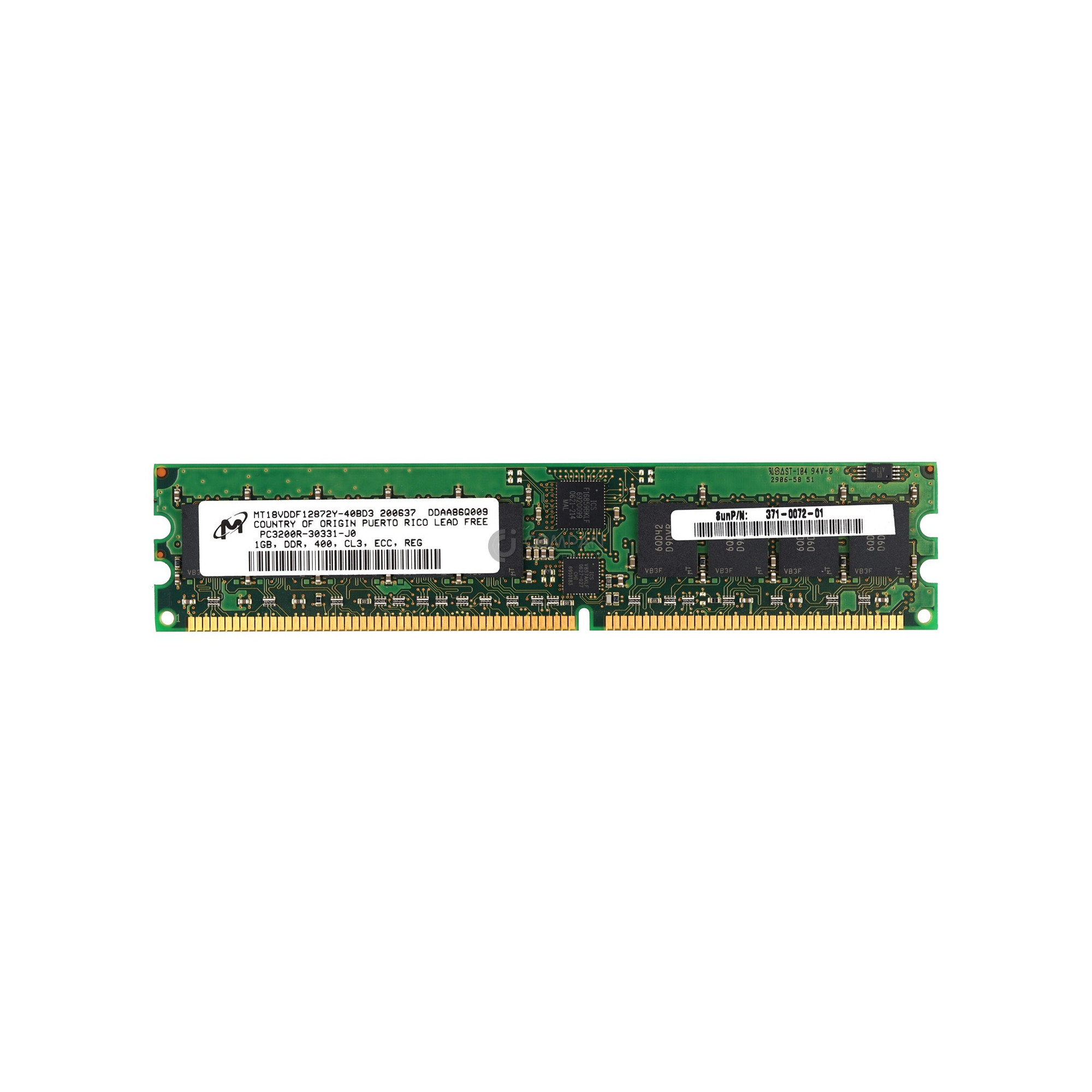 371-0072-01 SUN MEMORY 1GB PC 3200R DDR 400 CL3 ECC REG - MT18VDDF12872Y-40BD3