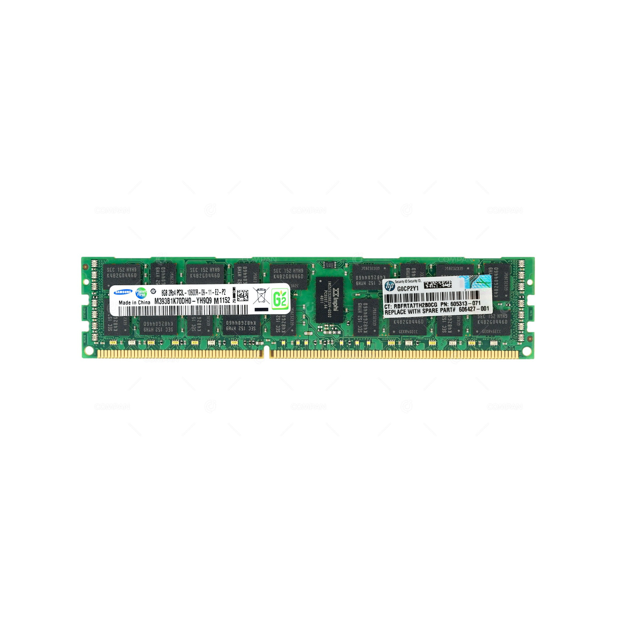 605313-071 HP DDR3 8GB 2RX4 PC3L-10600 1333MHZ CAS 9-9-9 RDIMM