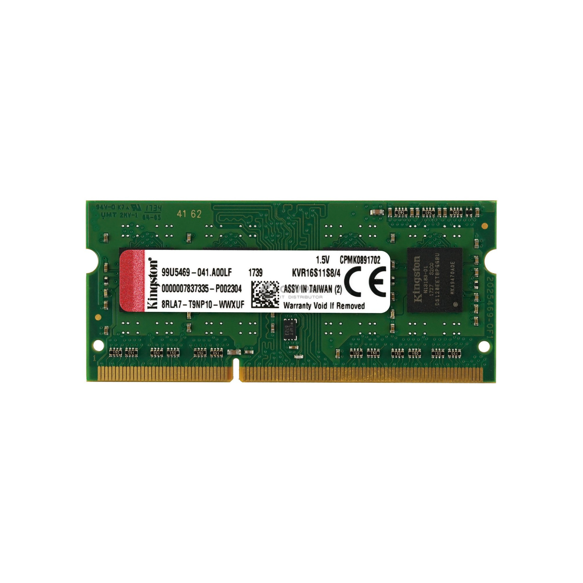 KVR16S11S8-4 KINGSTON MEMORY 4GB 1RX8 DDR3 PC3-12800 1600MHZ KVR16S11S8/4, 99U5469-041