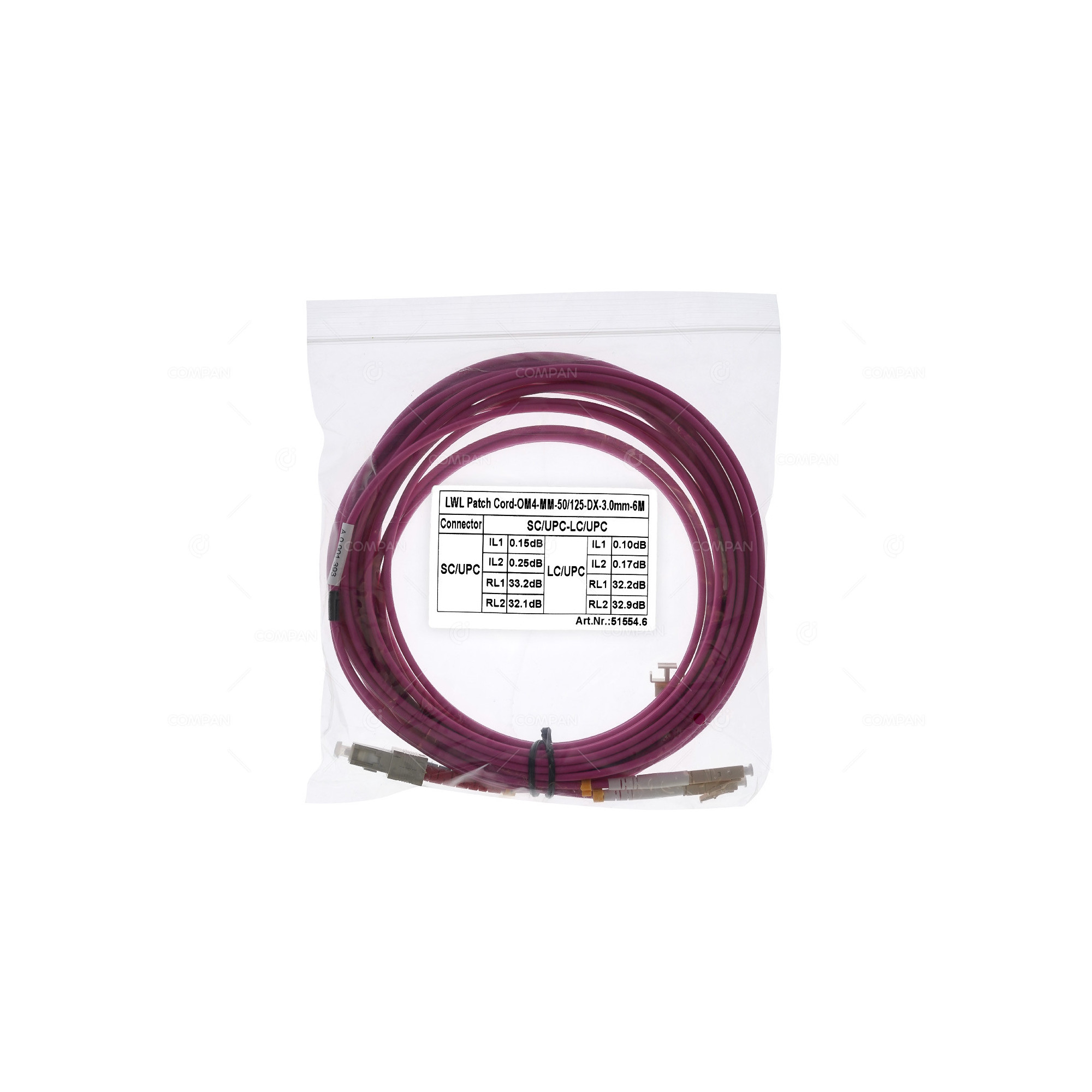 51554.6 FIBER OPTIC PATCH CORD MM OM4 50/125 SC/UPC-LC/UPC 6M