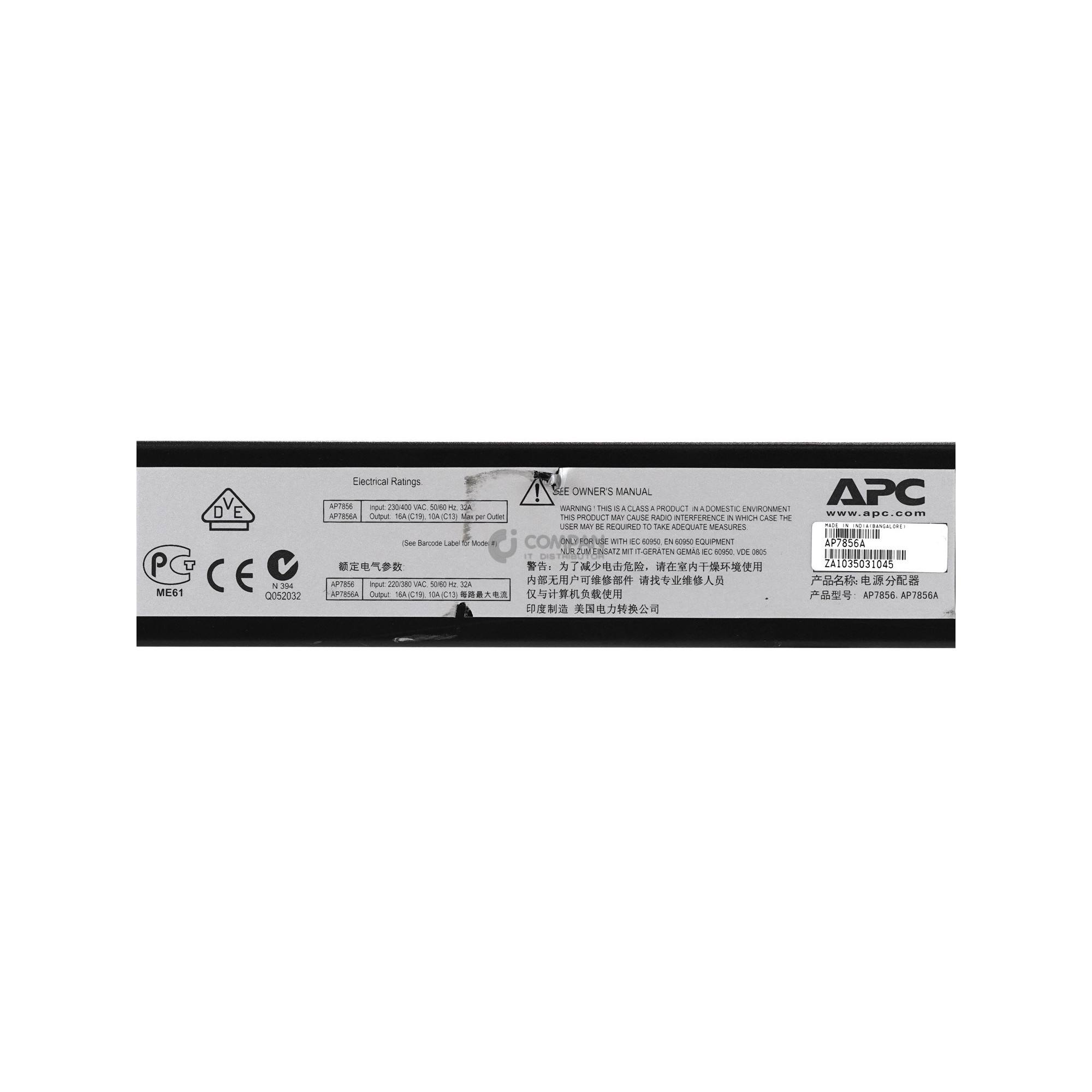 AP7856A APC RACK PDU METERED ZERO U 22KW 230V 16/32A -