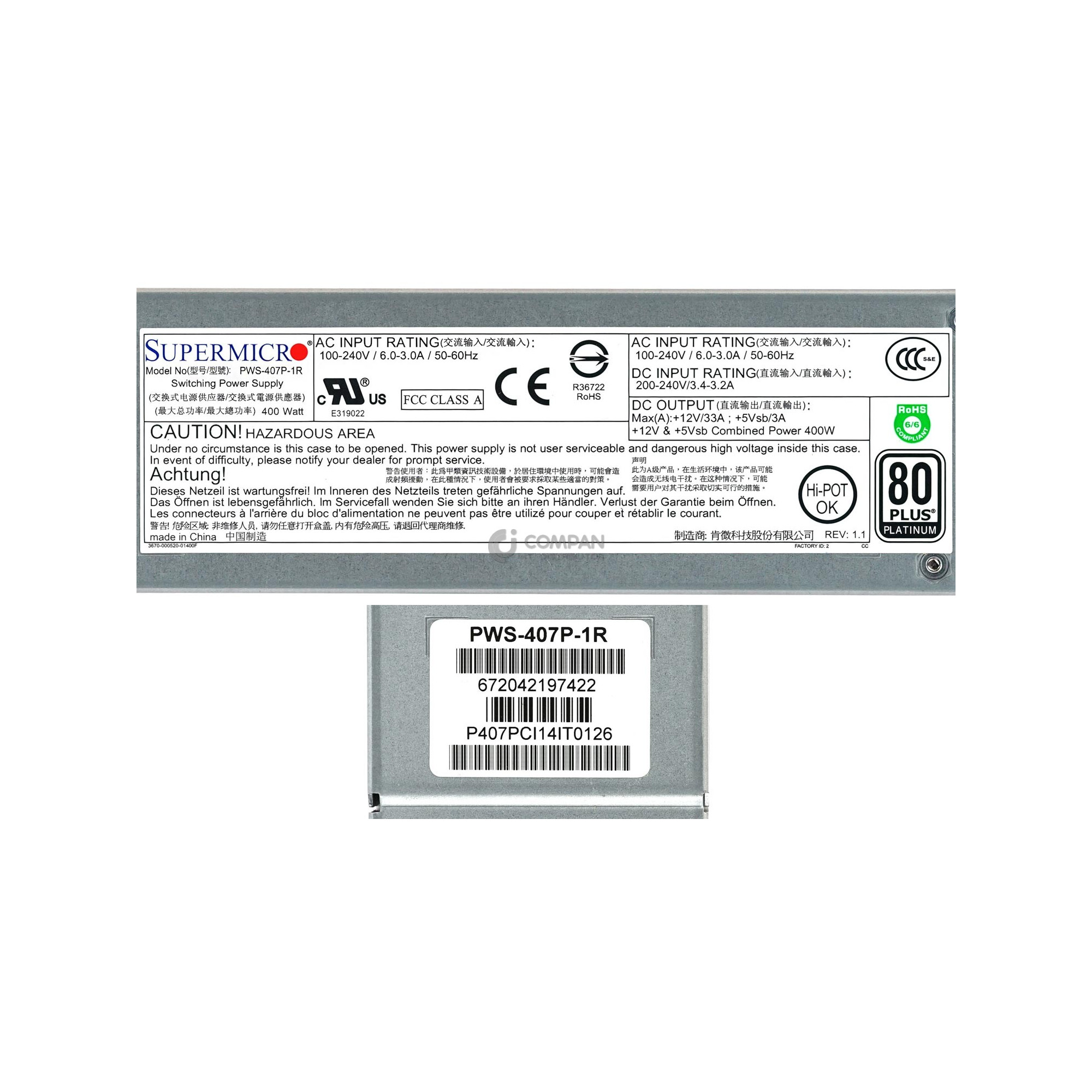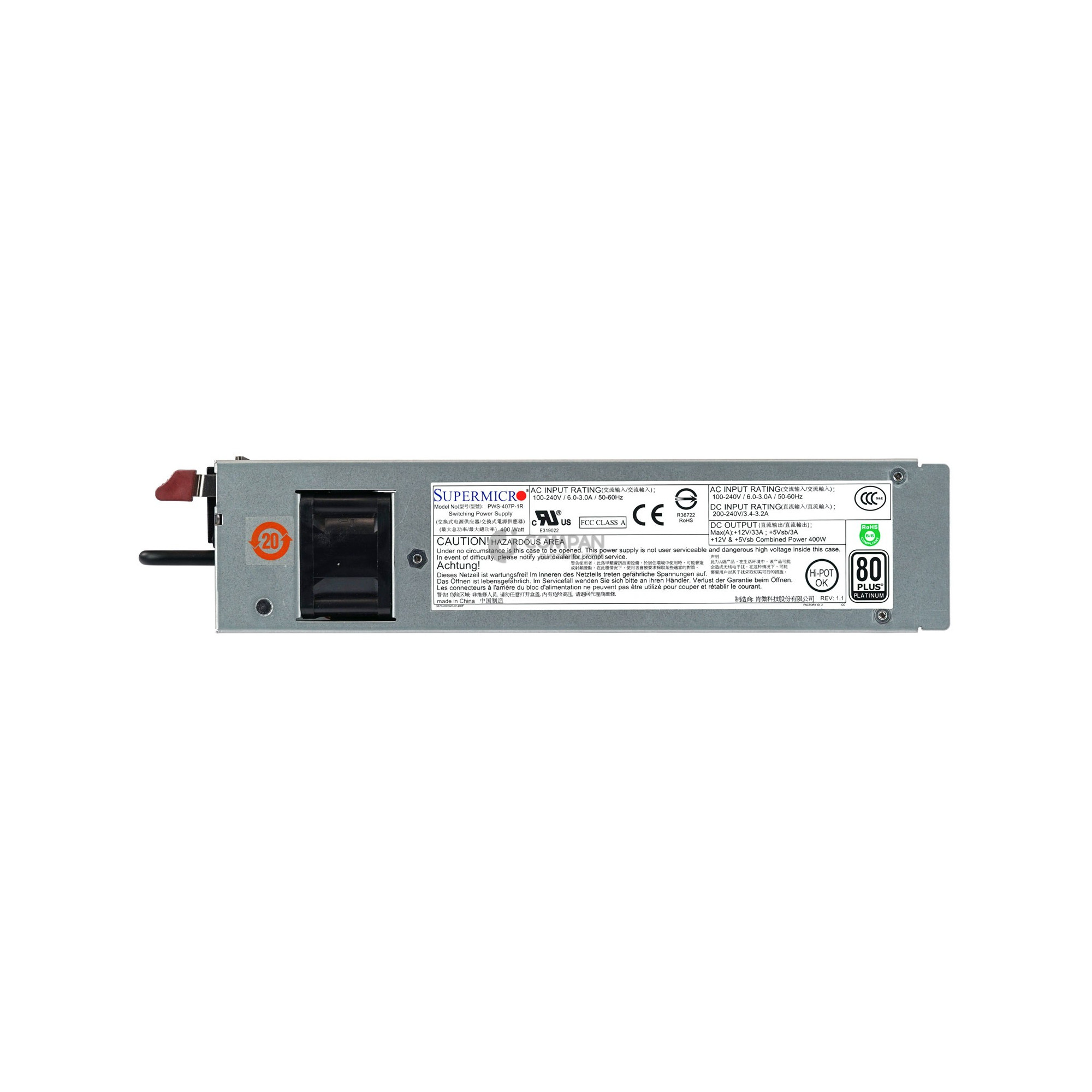 PWS-407P-1R SUPERMICRO 400W PLATINUM PSU FOR INFOVISTA IPANEMA IPE-2000AX-T