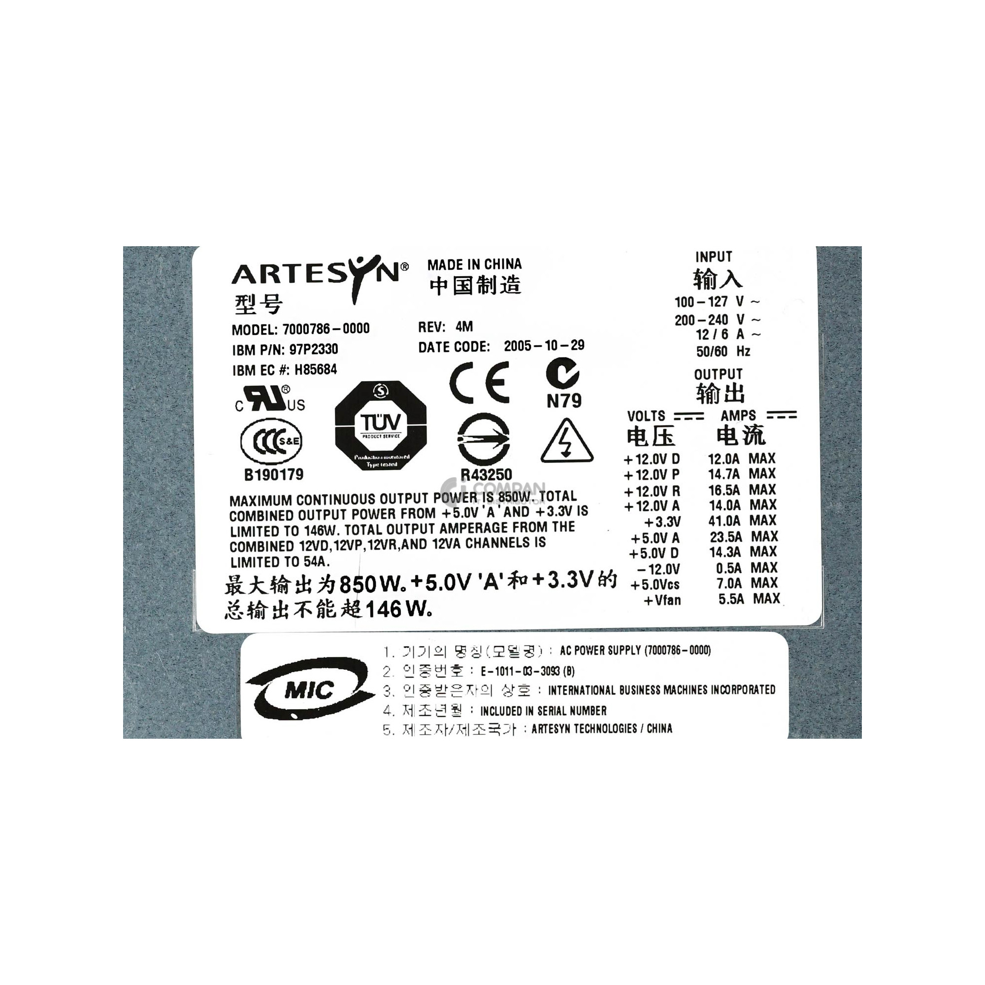 97P2330 IBM 850W POWER SUPPLY FOR IBM POWER 520