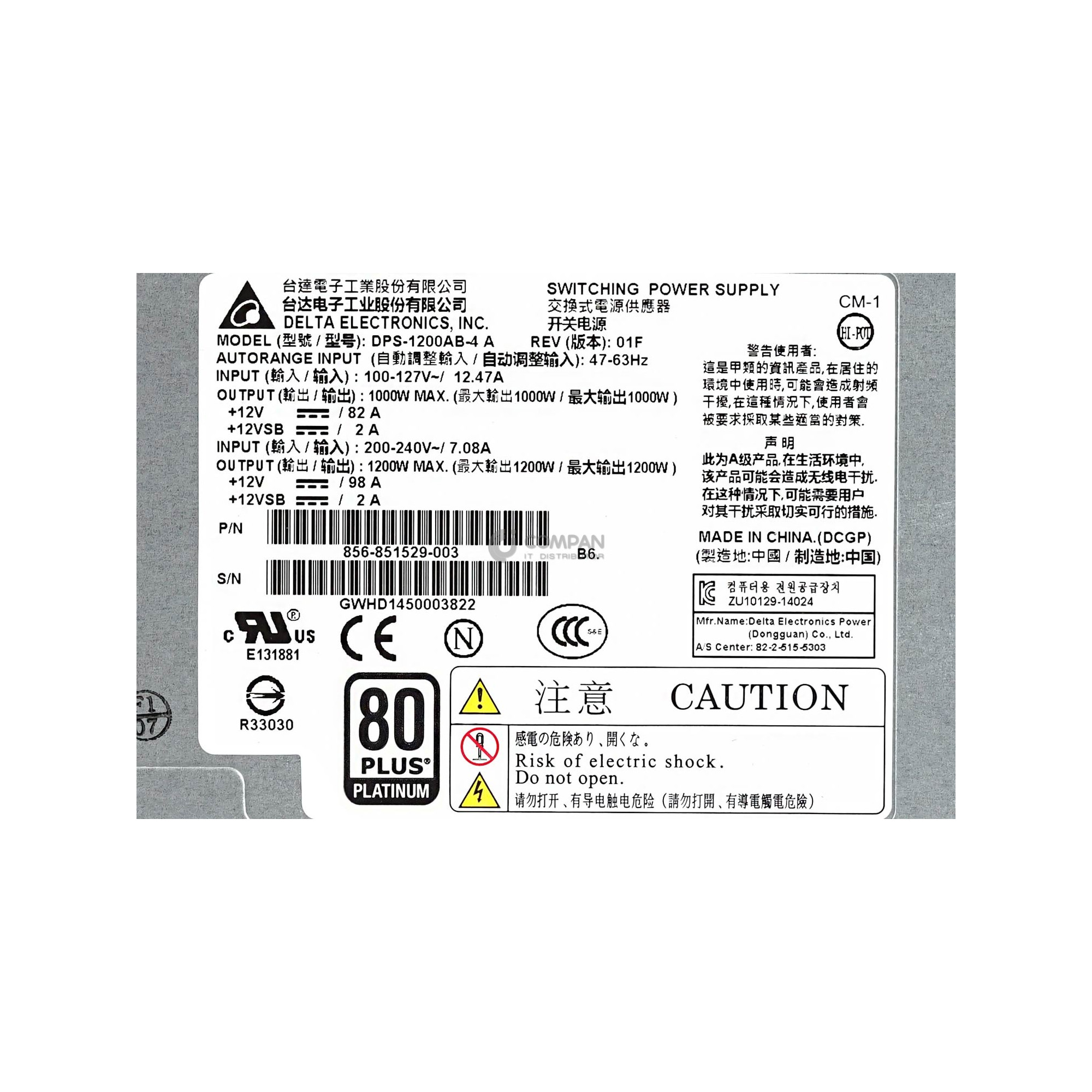 856-851529-003 NEC 1000W 80PLUS PLATINUM POWER SUPPLY FOR NEC EXPRESS5800