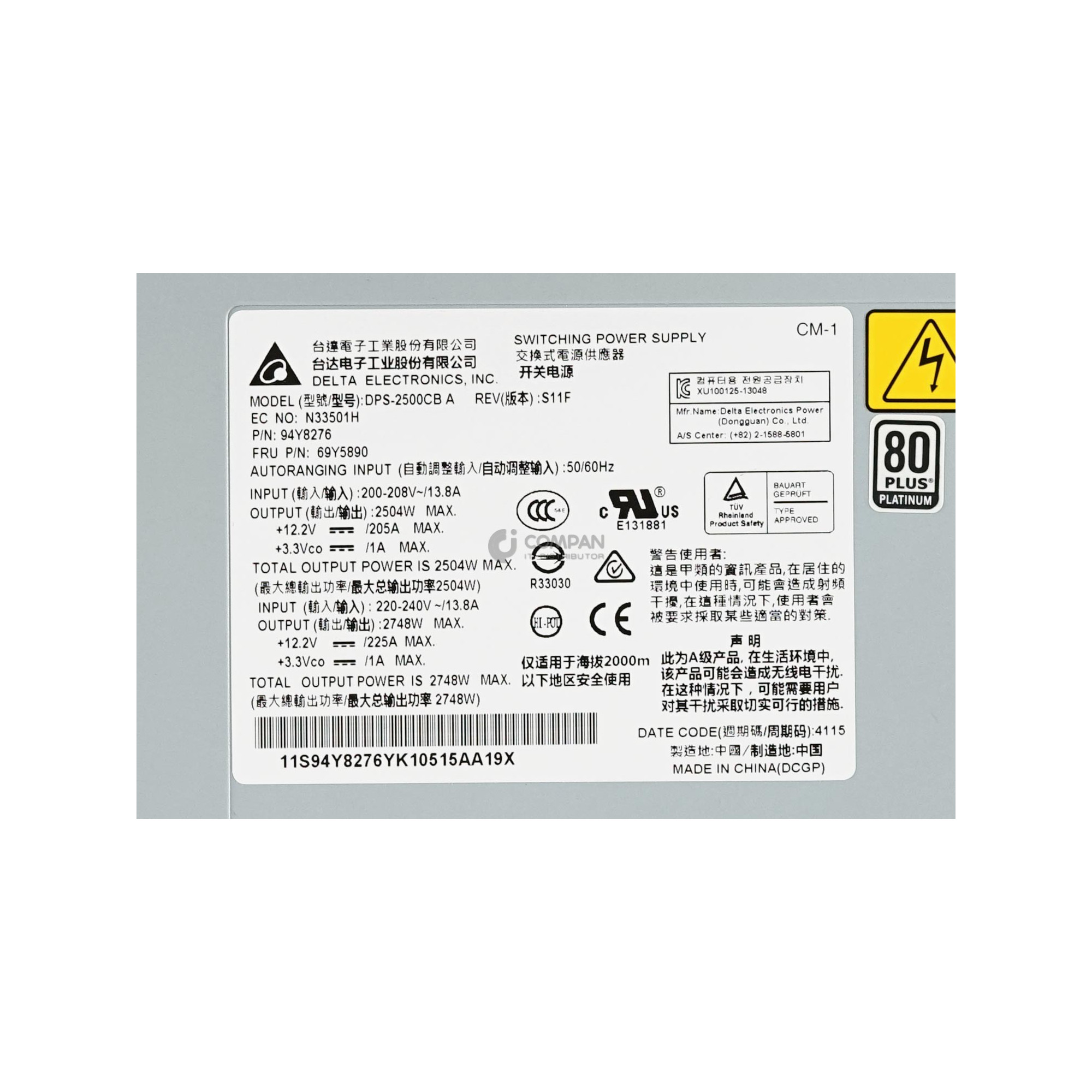 69Y5890 LENOVO 2500W POWER SUPPLY FOR IBM LENOVO FLEXSYSTEM BLADE ENCLOSURE