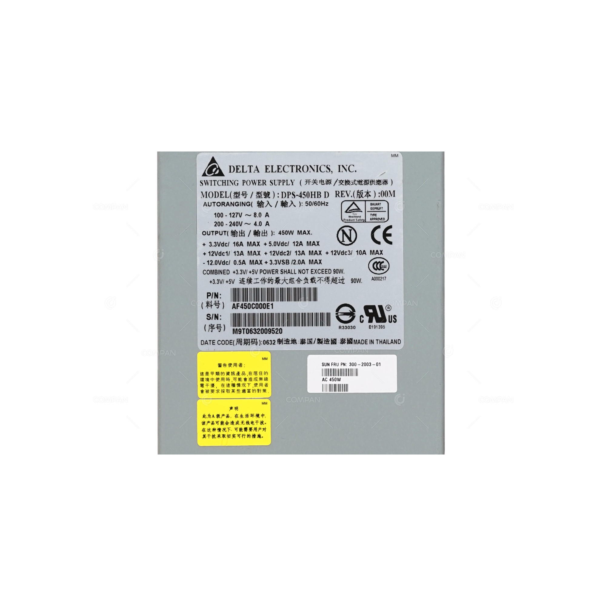 300-2003-01 SUN 450W POWER SUPPLY FOR SUNFIRE X2200 M2 DPS-450HB D, AF450C000E1