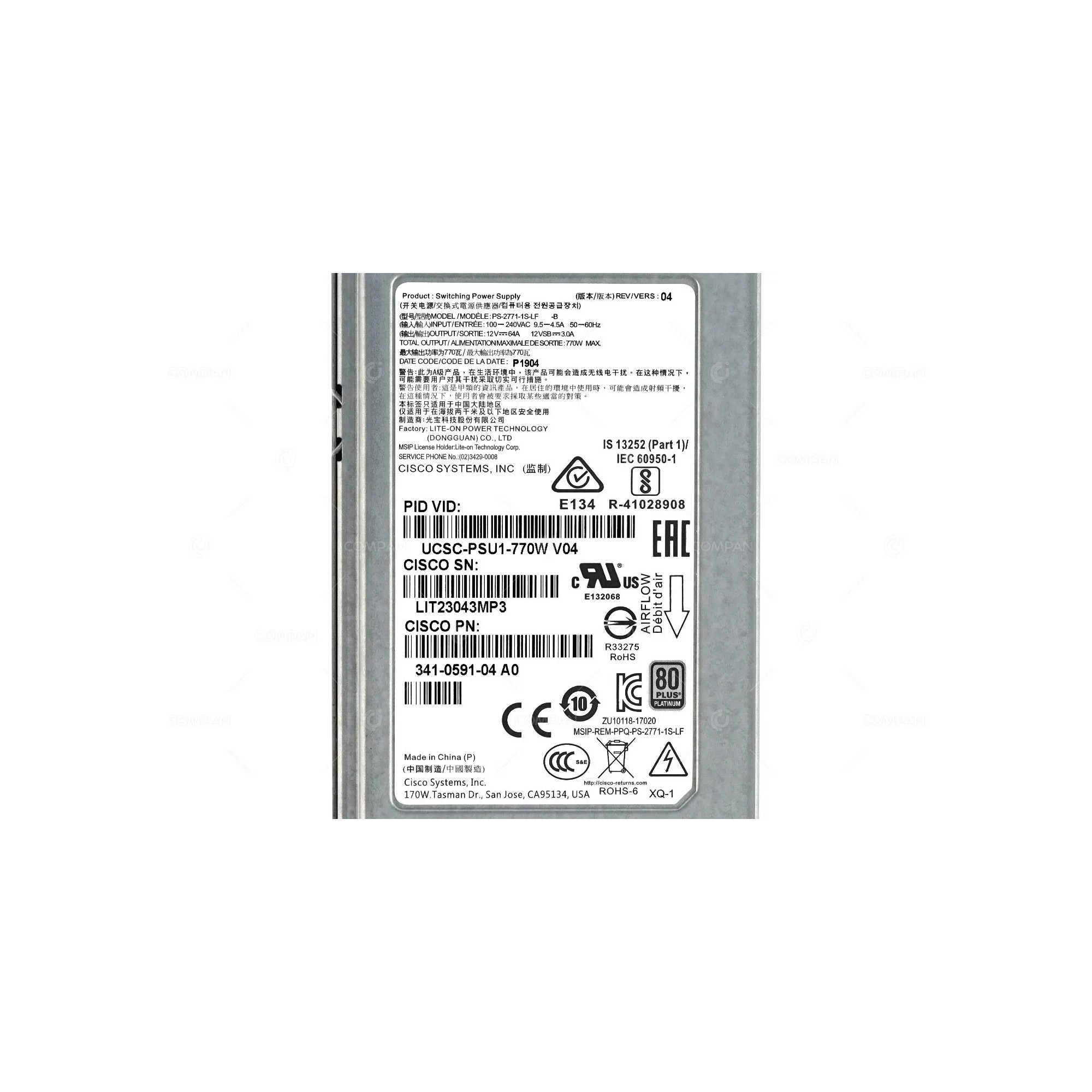 | Part Options | UCSC-PSU1-770W, PS-2771-1S-LF |