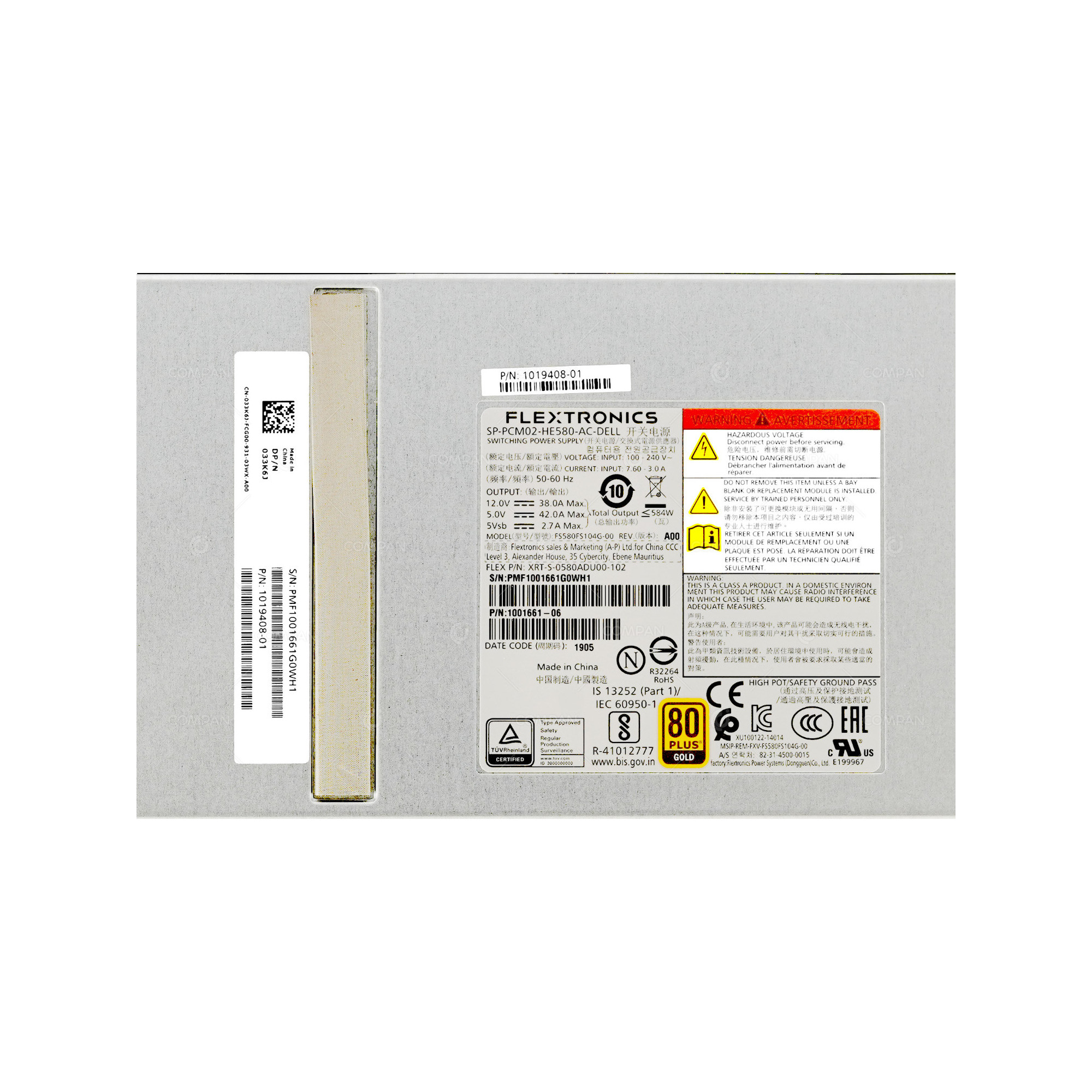 1019408-01 DELL FLEXTRONICS 580W POWER SUPPLY FOR SC4020 1001661-06, SP-PCM02-HE580-AD, 33K6J