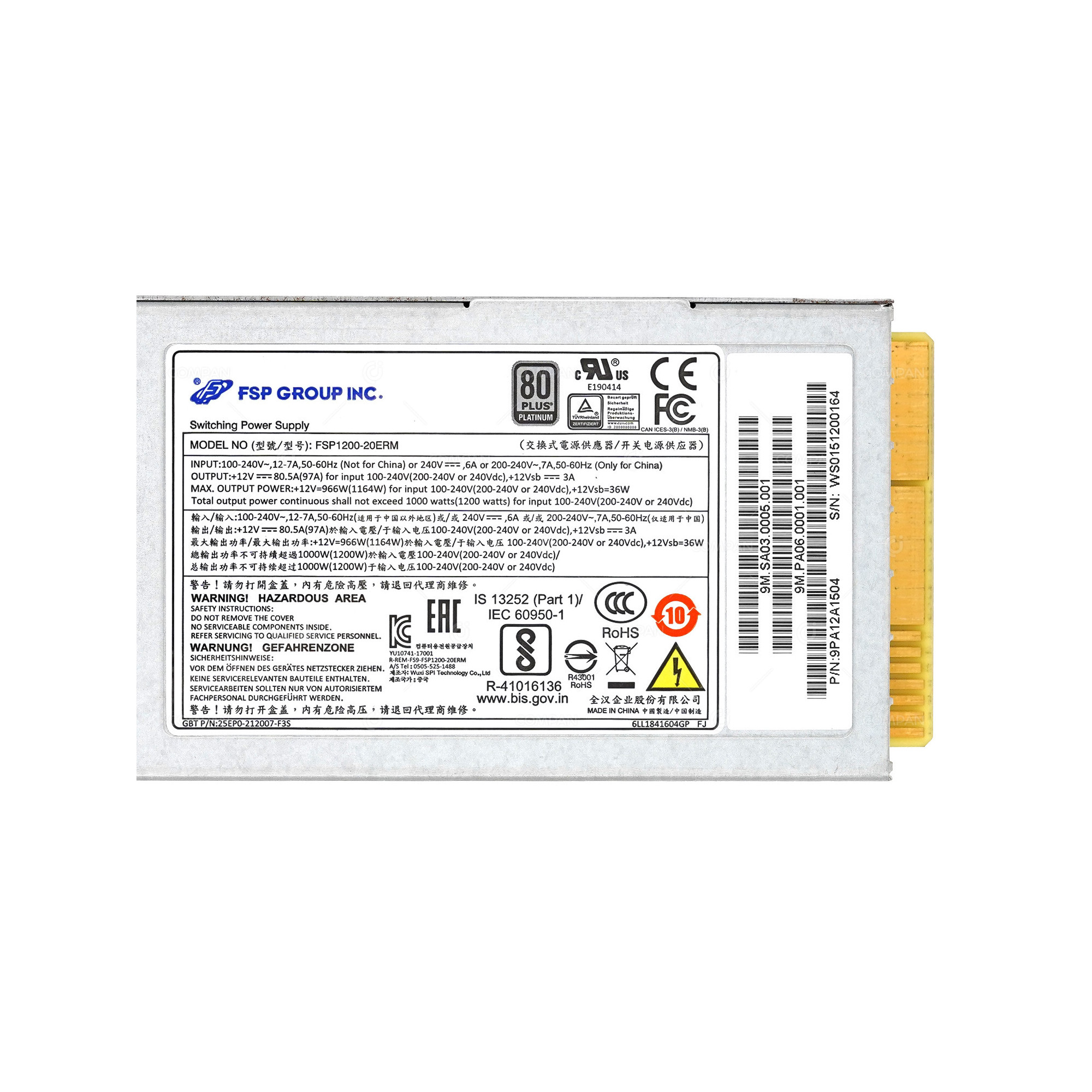 25EP0-212007-F3S GIGABYTE 1200W PLATINUM SWITCHING POWER SUPPLY FOR R282-Z90