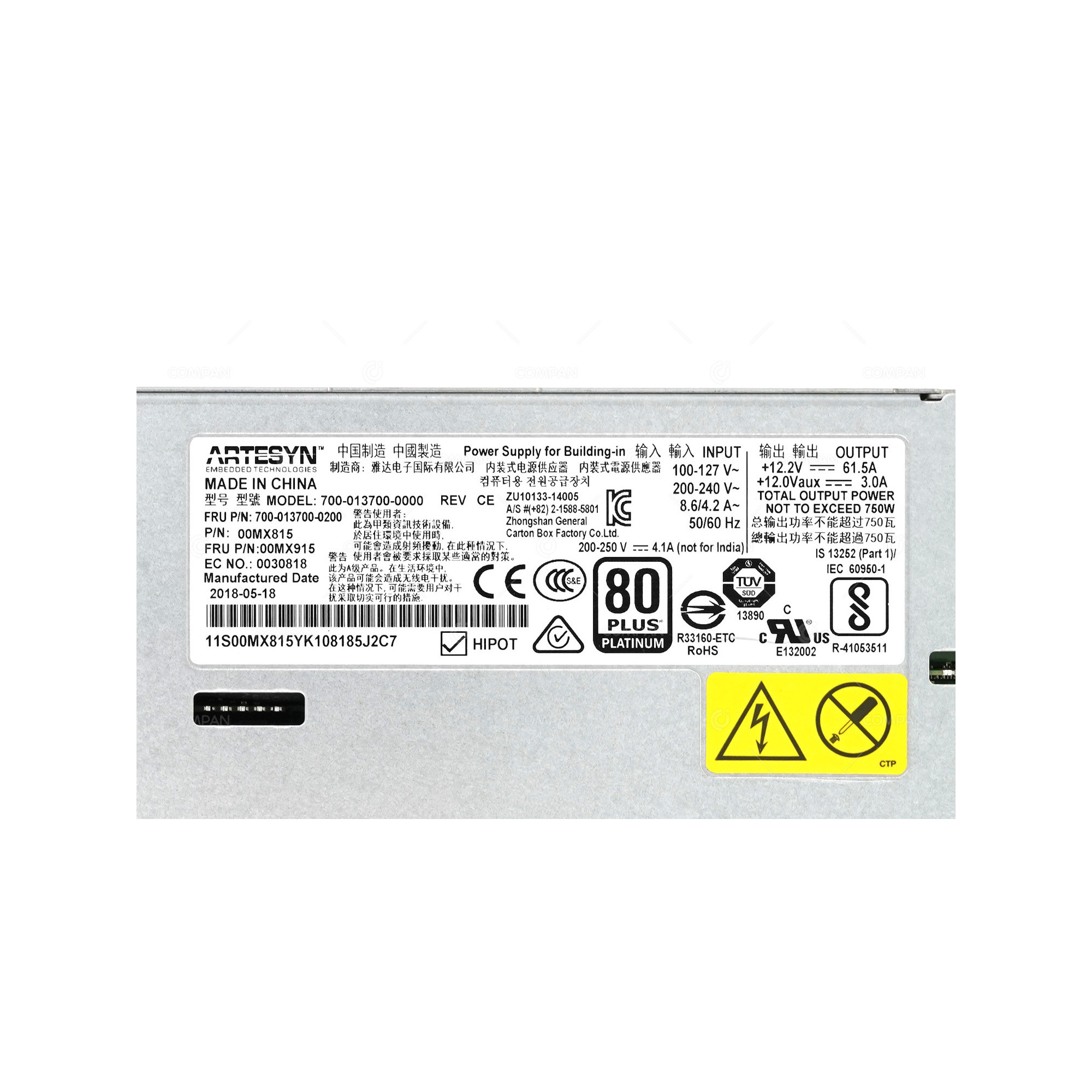 00MX915 LENOVO 750W HIGH EFFICIENCY PLATINUM AC POWER SUPPLY FOR SYSTEM X