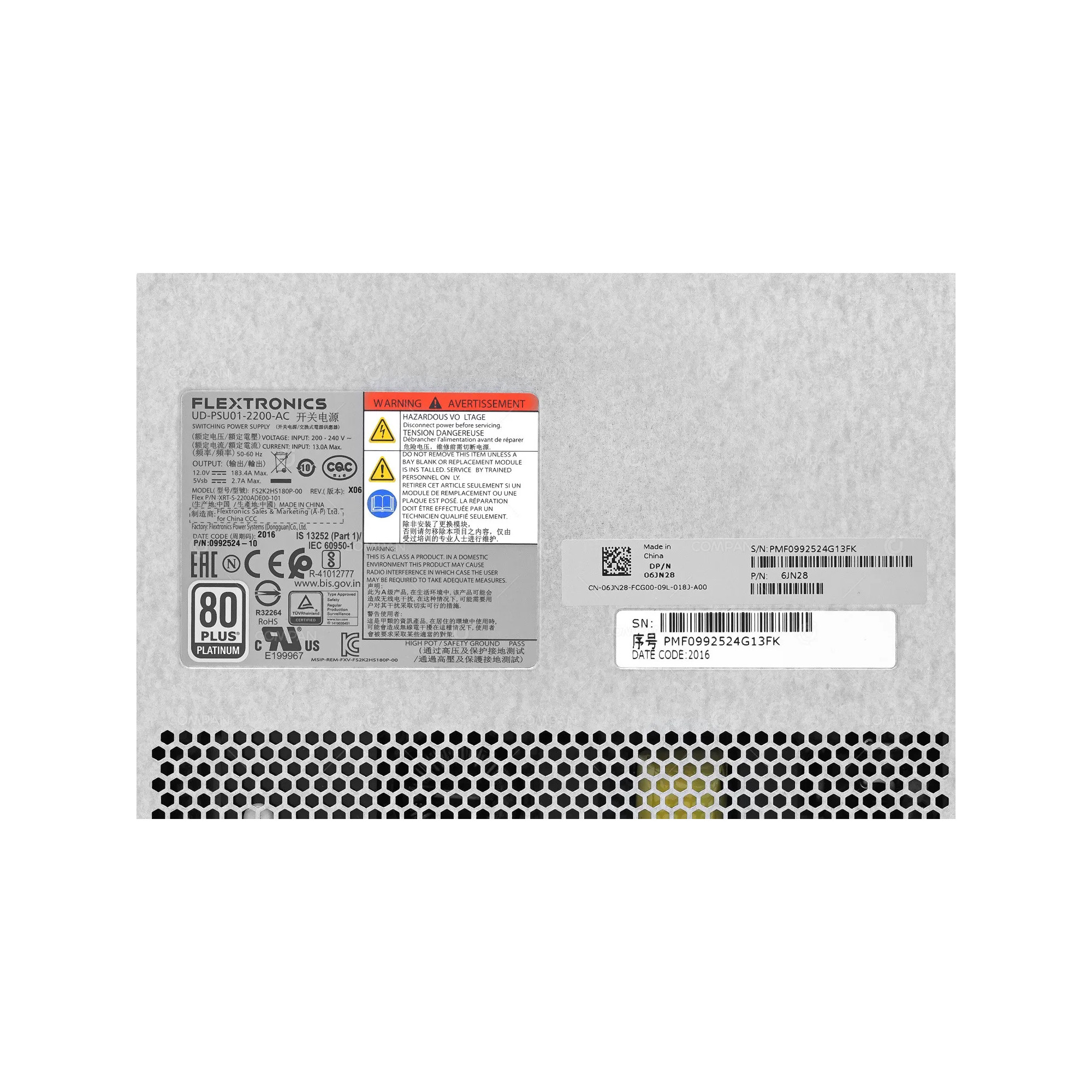 6JN28 DELL EMC 2200W 200-240V POWER SUPPLY FOR POWERVAULT ME4084