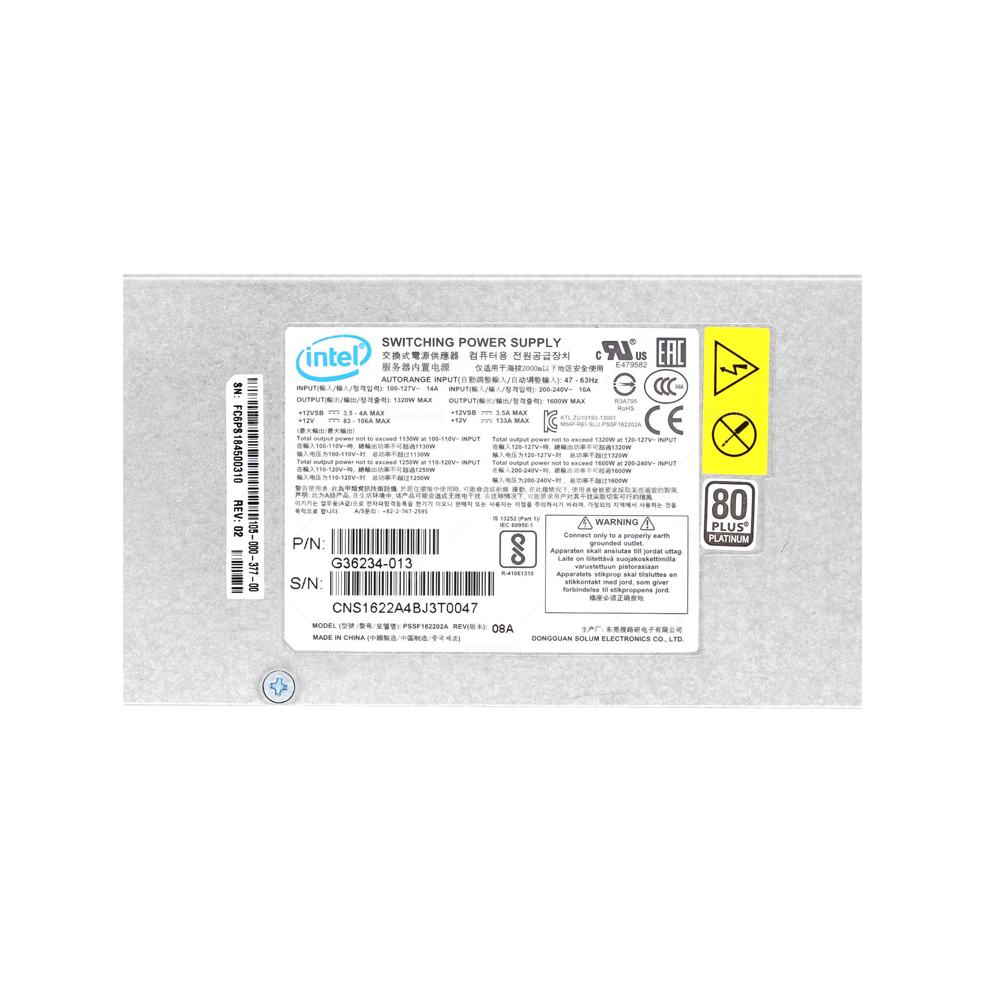 105-000-377-00 EMC 1600W SWITCHING POWER SUPPLY FOR EMC ECS U300 G1