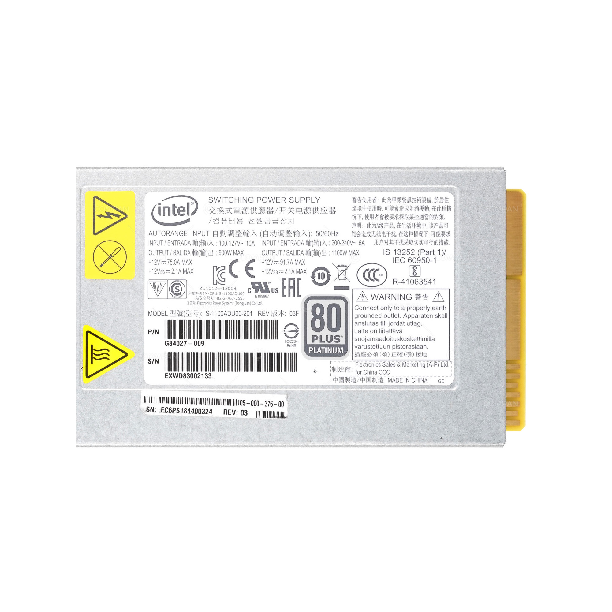 105-000-376-00 EMC 1100W 12V 91.7A SWITCHING POWER SUPPLY FOR INTEL S2600GZ