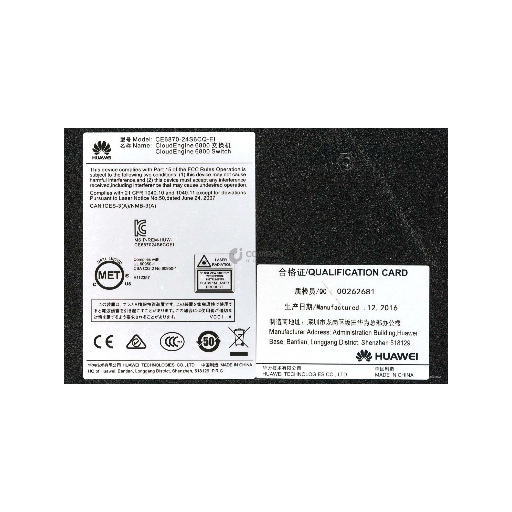 CE6870-24S6CQ-EI HUAWEI 24-PORT 10GE SFP+,6-PORT 100GE QSFP28 SWITCH W/ DUAL PSU