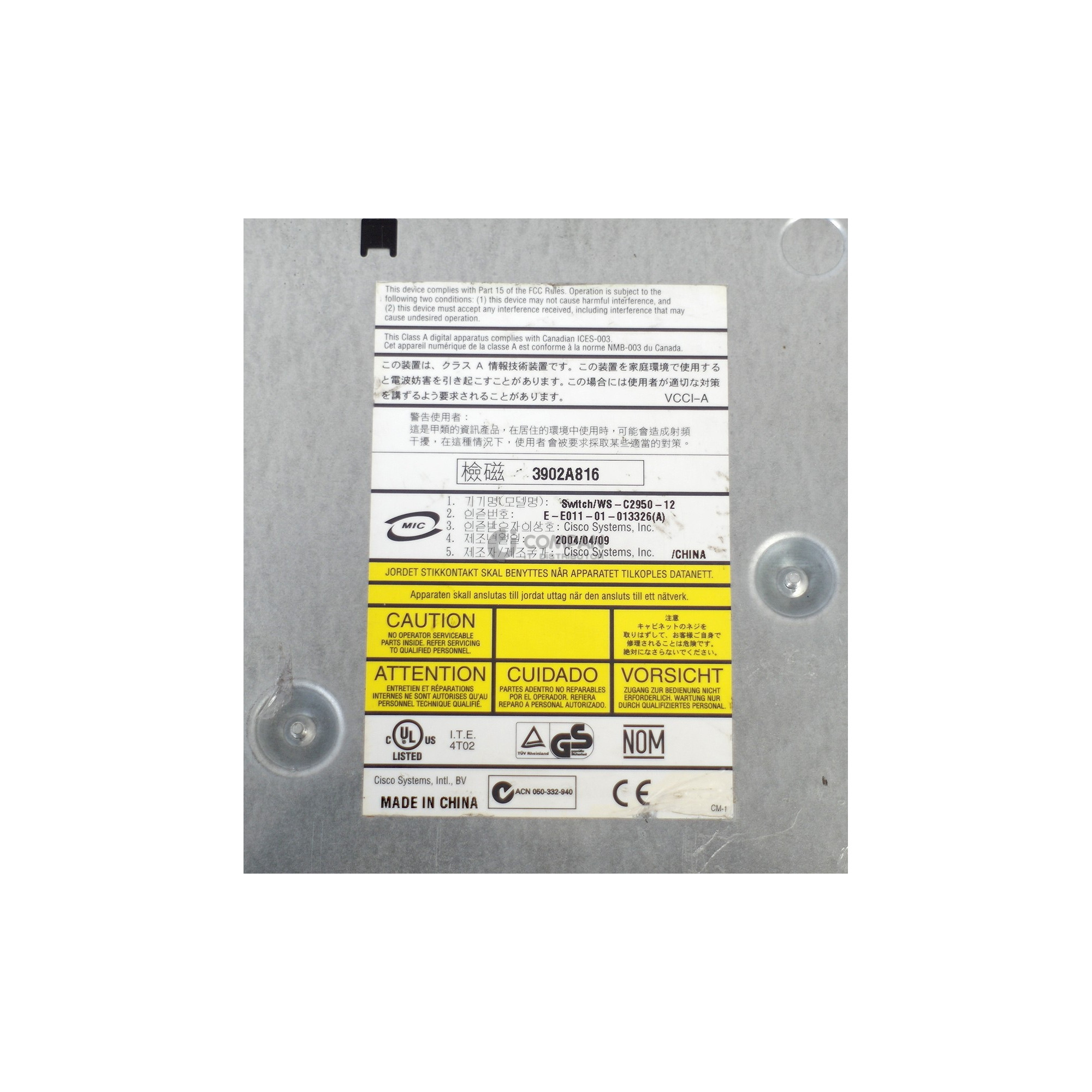 WS-C2950-12 CISCO CATALYST 2950 12-PORT 10/100 BASE TX ETHERNET SWITCH