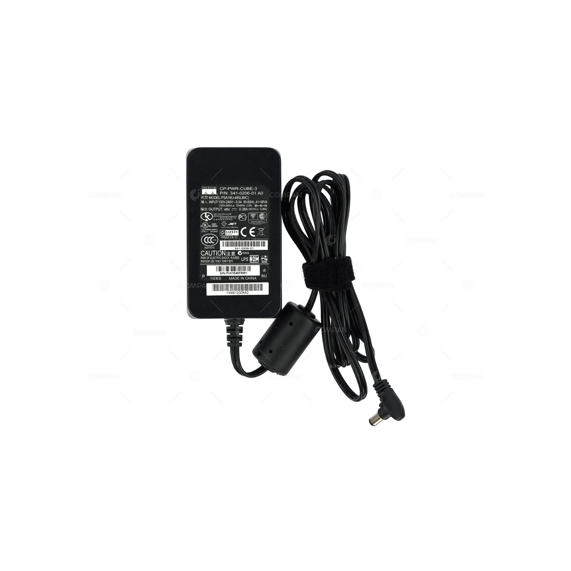 341-0206-01 CISCO 18W 48V 0.38A AC/DC ADAPTER FOR CISCO 7900 IP PHONE SERIES CP-PWR-CUBE-3, PSA18U-480(JMC)