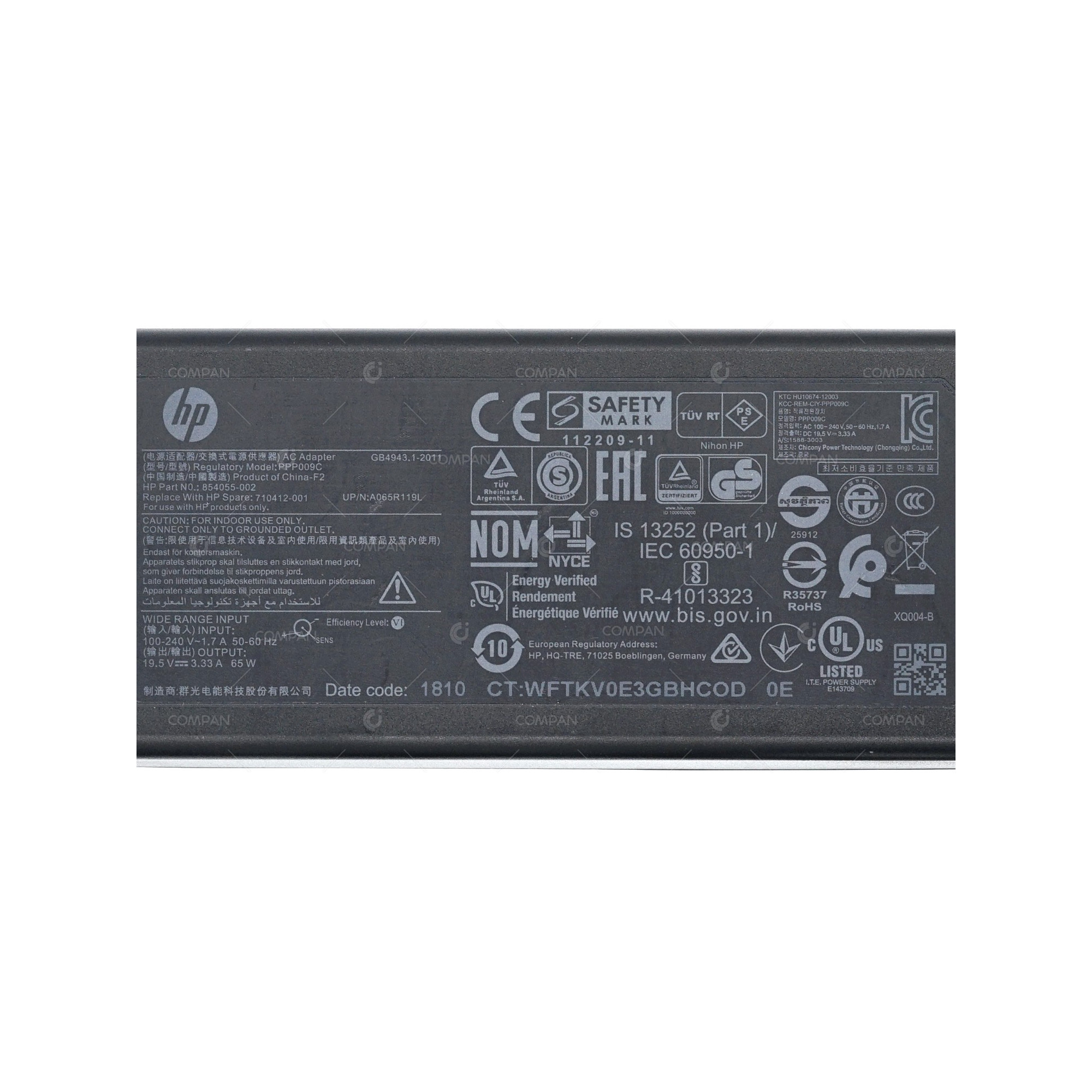 710412-001 HP 65W 19.5V 3.33A AC ADAPTER FOR ELITEBOOK FOLIO PROBOOK 854055-002, PPP009C