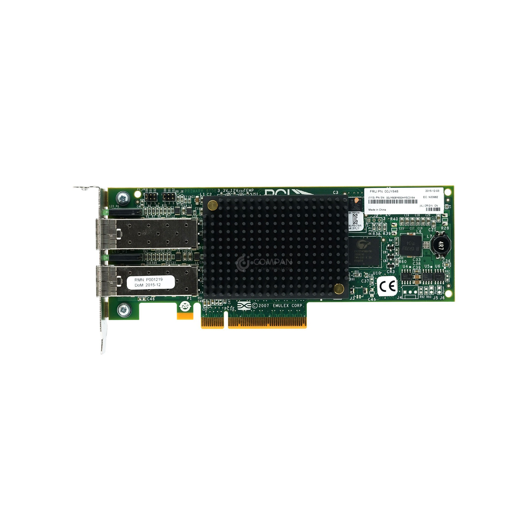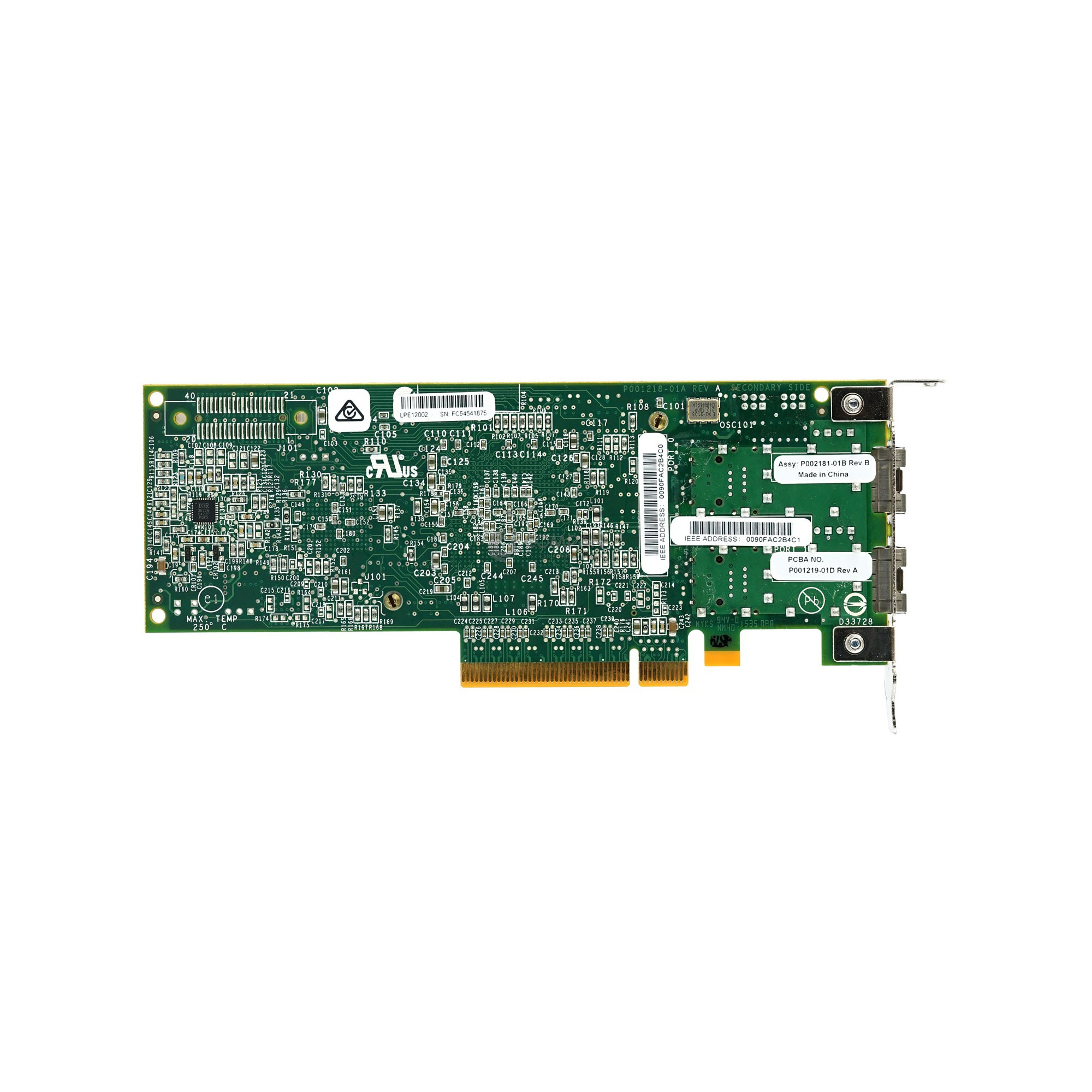 00JY848 LP IBM LPE12002 8GB FC DUAL PORT HOST BUS ADAPTER PCI-E LOW PROFILE 00JY808, LPE12002, P002181-01B, P001219-01D