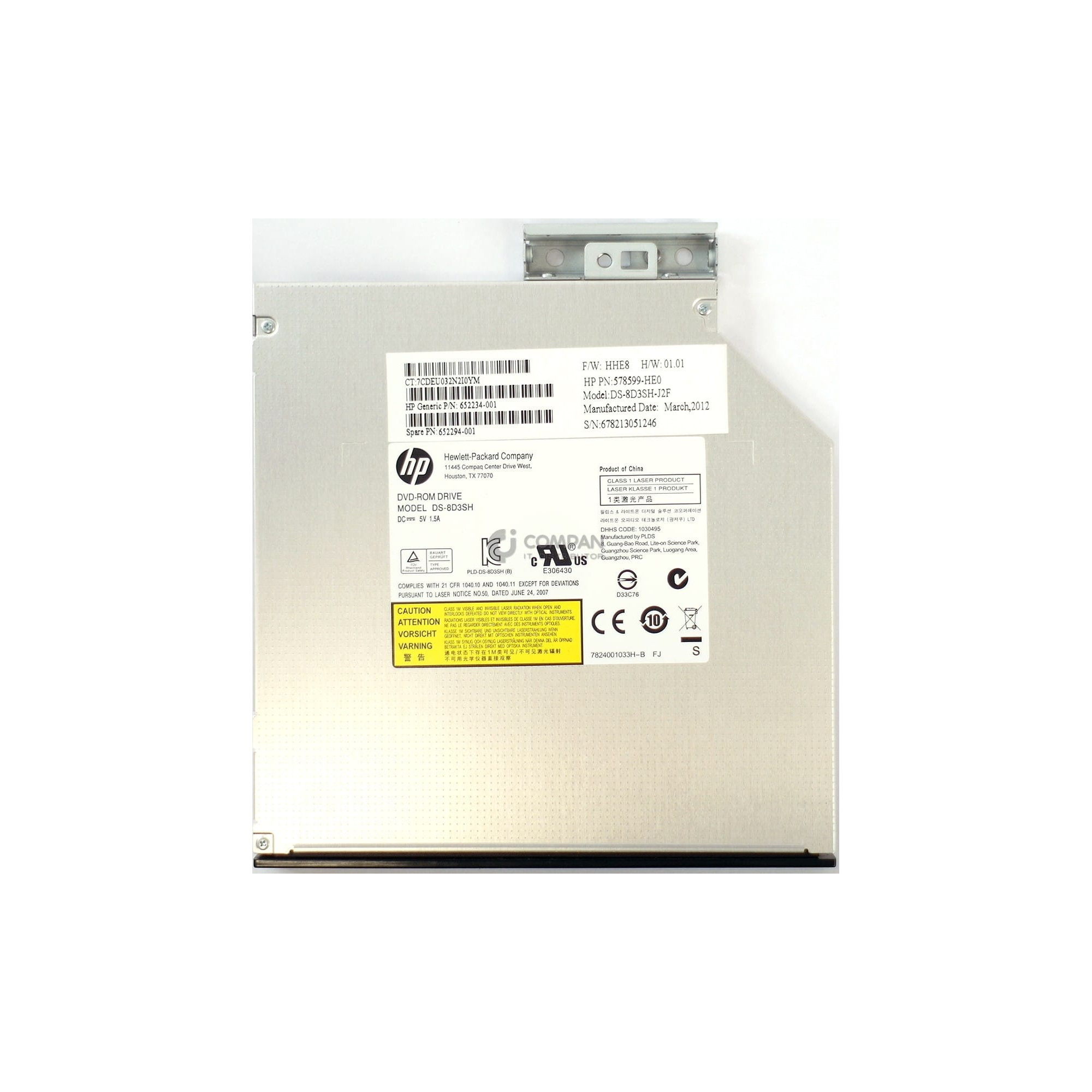 652294-001 HP SPS-DRV DVDROM 12.7MM SLIM SATA JBLACK FOR DL380P G8