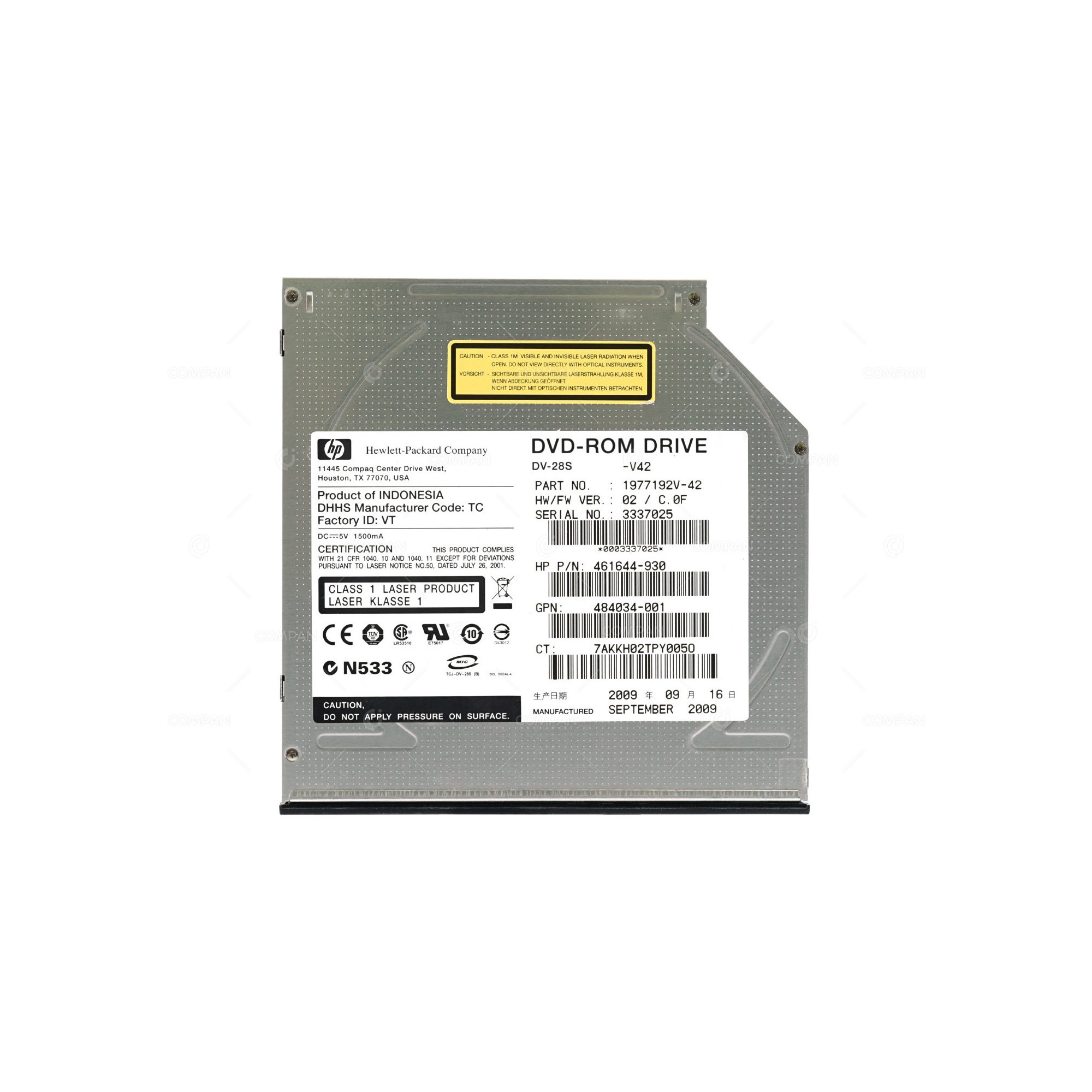 461644-930 HP DVD-ROM 12.7MM SLIMLINE SATA FOR DL360 DL380 G6, G7, DL580 G7, DL380P G8 484034-001, 1977192V-42, DV-28S