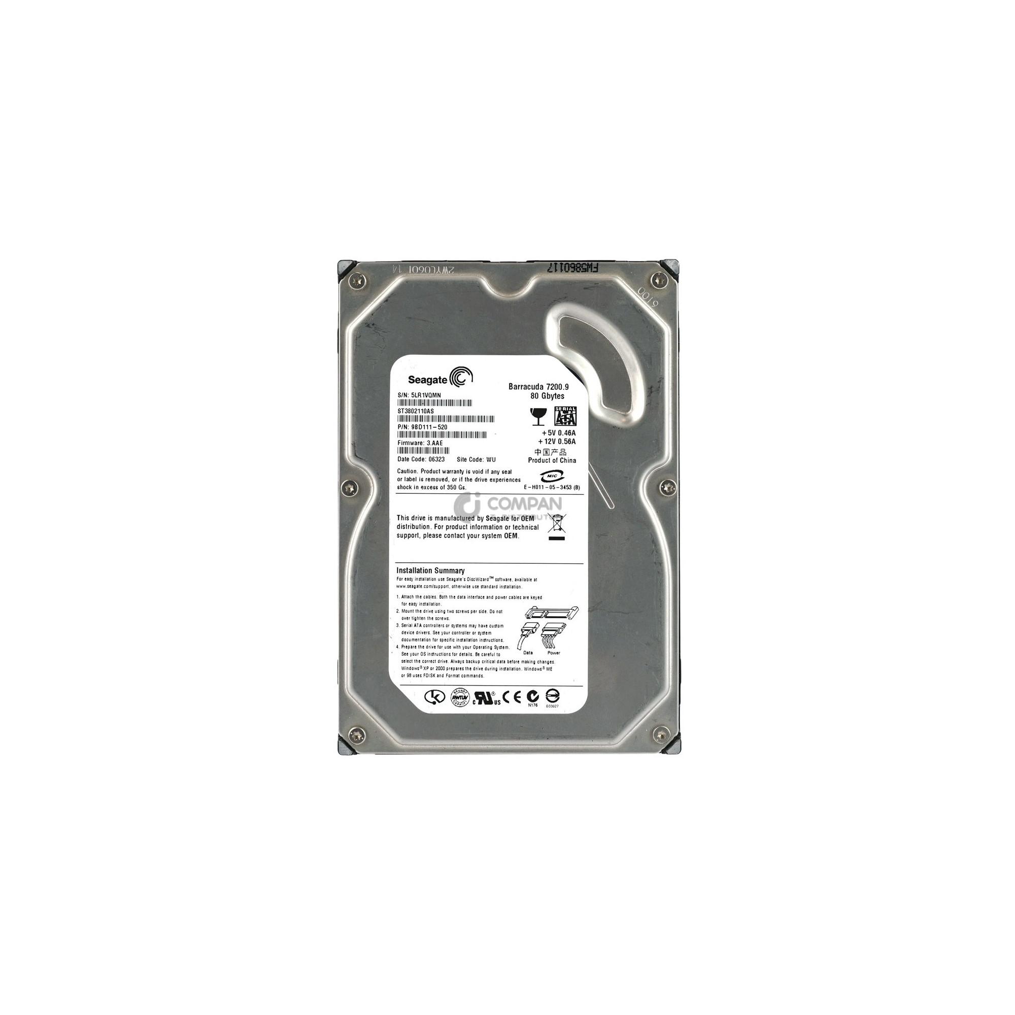 ST3802110AS SEAGATE HARD DRIVE 80GB 7.2K 3G 3.5 LFF SATA