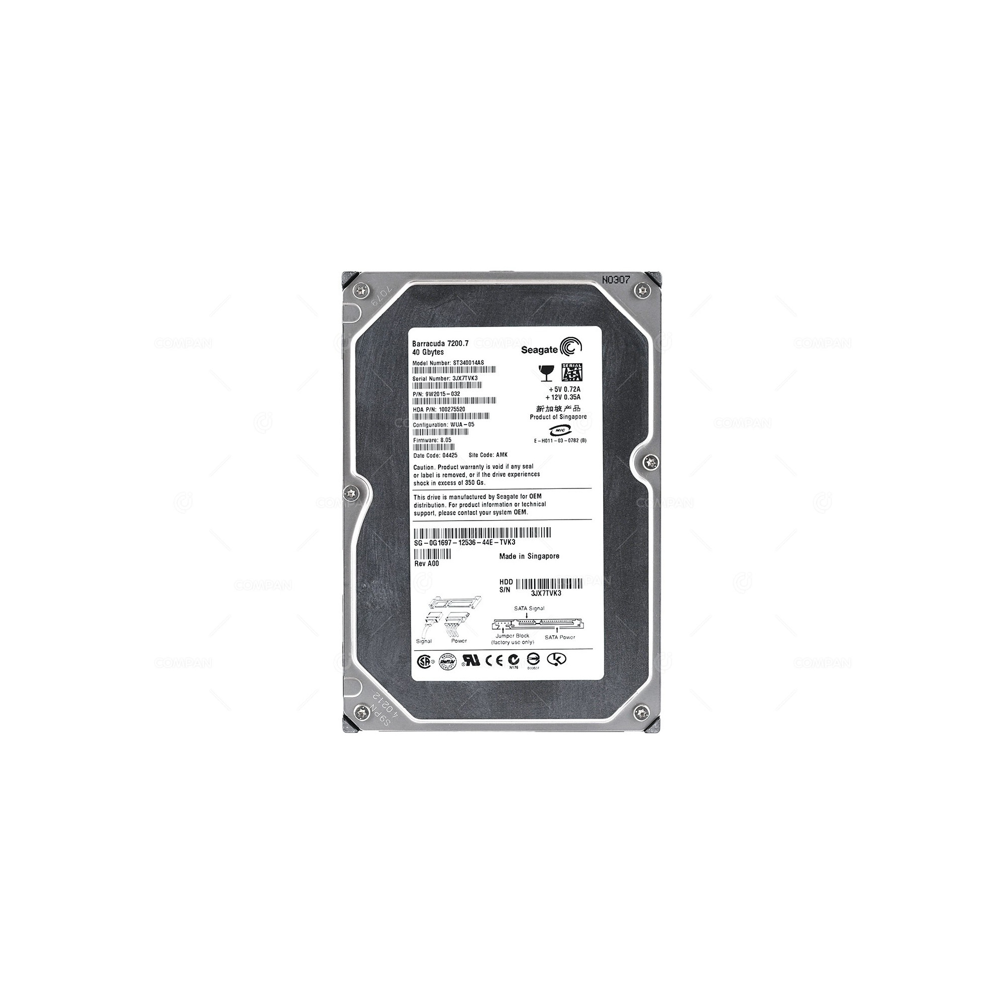 G1697 DELL HARD DRIVE 40 GB 7.2K 3.5 LFF SATA 0G1697
