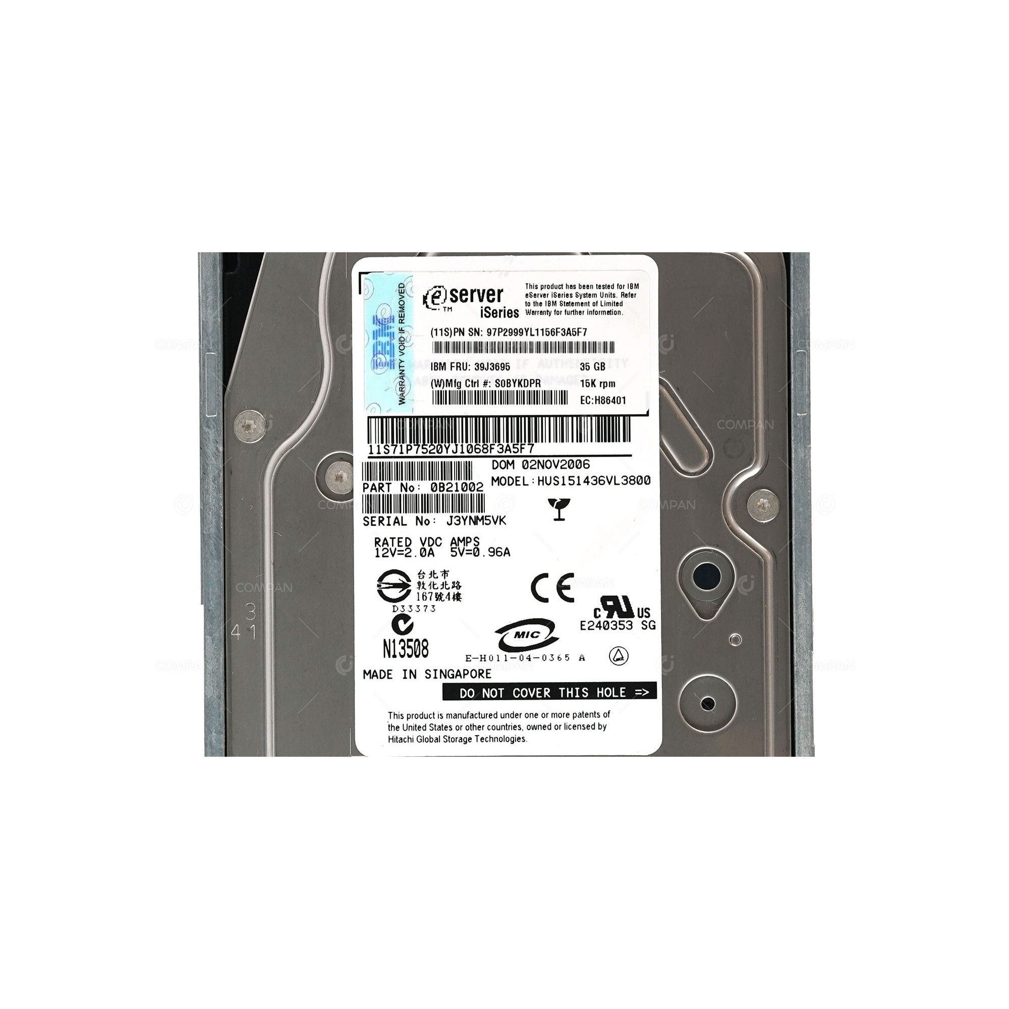 39J3695 IBM HARD DRIVE 35GB 15K 3.5 LFF SCSI 97P2999, 0B21002, HUS151436VL3800