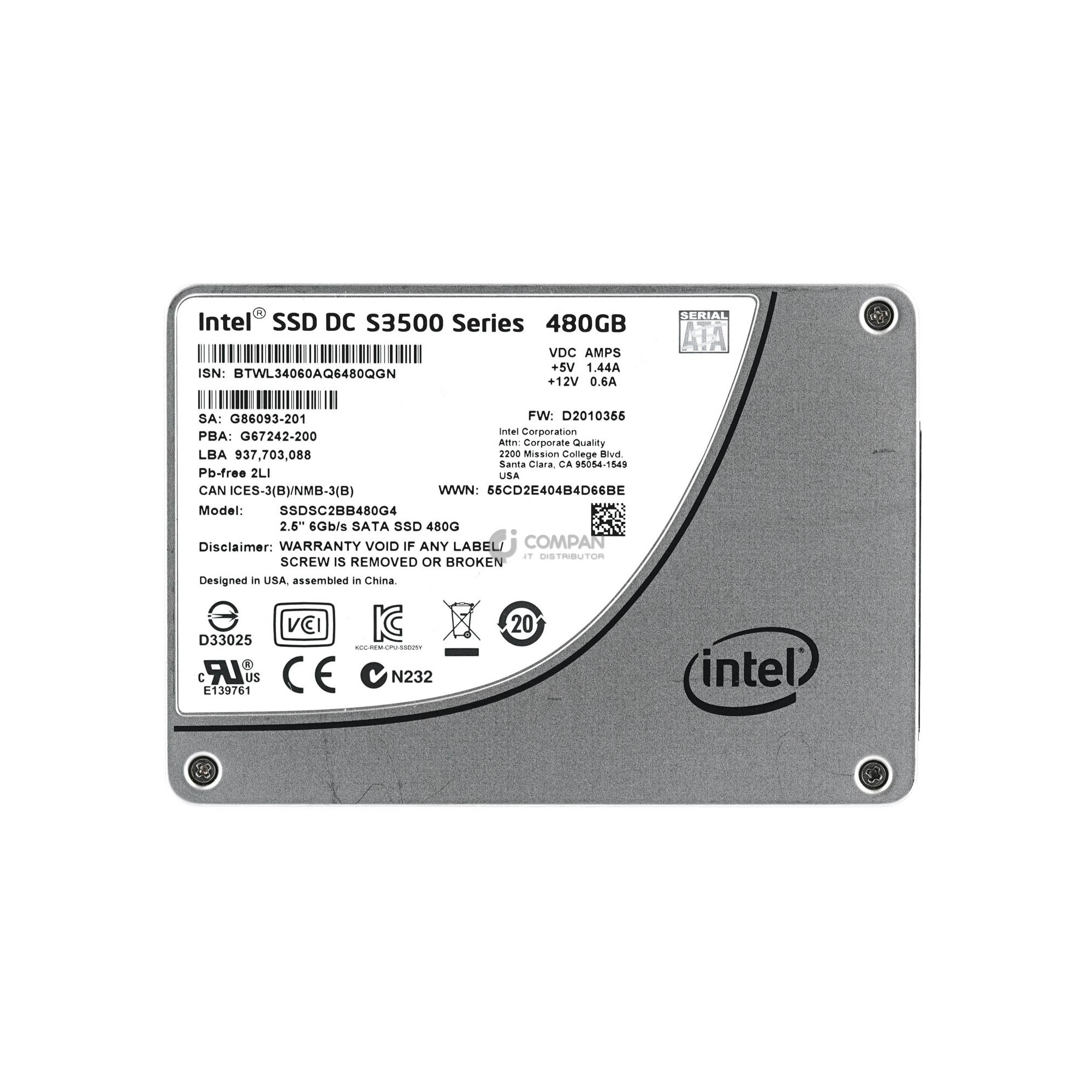 SSDSC2BB480G4 INTEL 480GB 6G MLC SATA SSD 2.5 SFF G86093-201