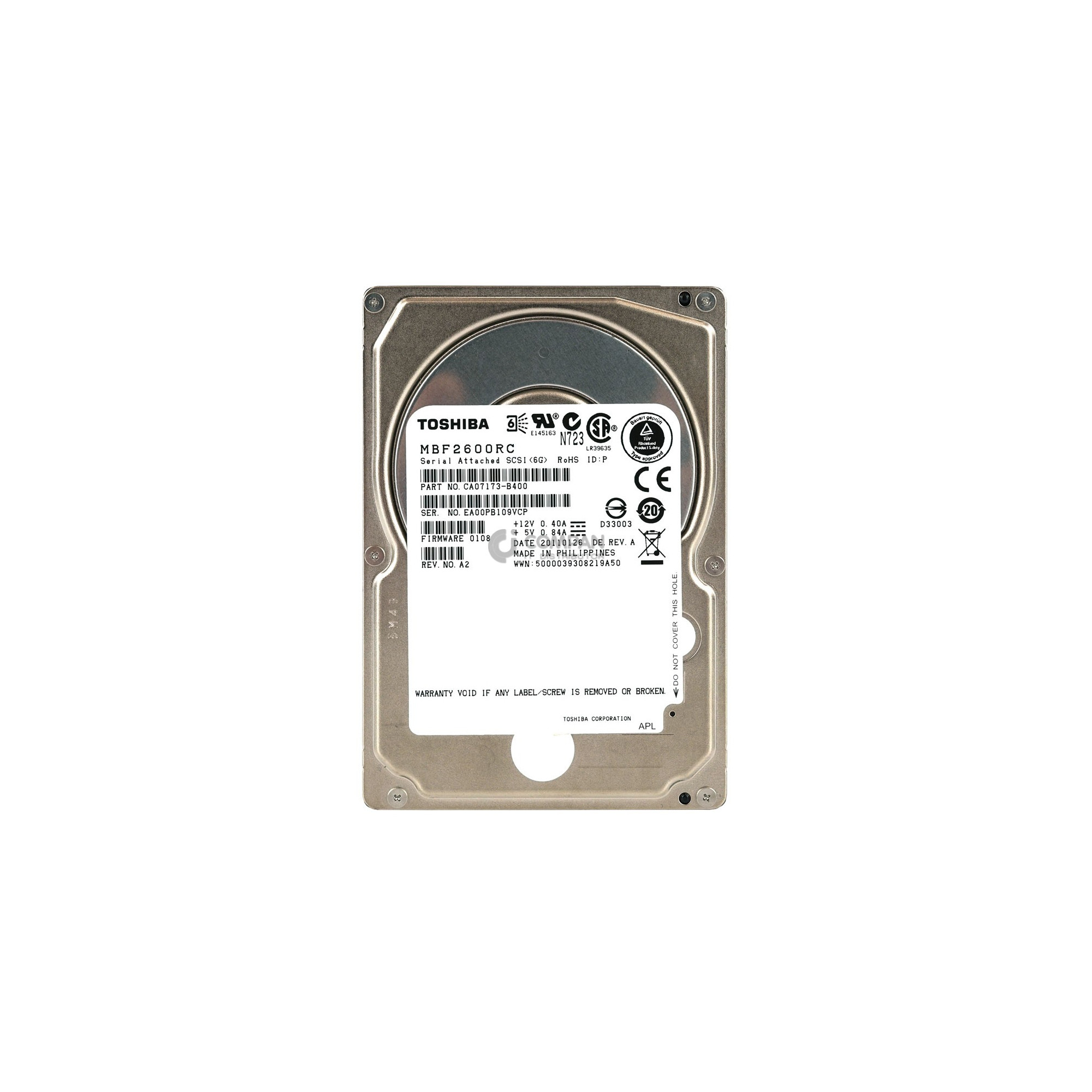 MBF2600RC TOSHIBA HARD DRIVE 600GB 10K 6G 2.5 SAS CA07173-B400