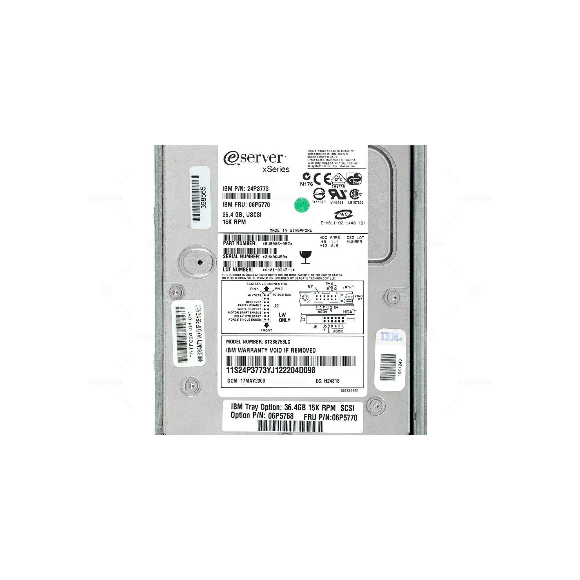 Product Type: hard drive Storage Capacity: 36 GB Form Factor: 3,5 Zoll Features: Hot Swap Brand: IBM Interface: SCSI Compatible With: SERVER