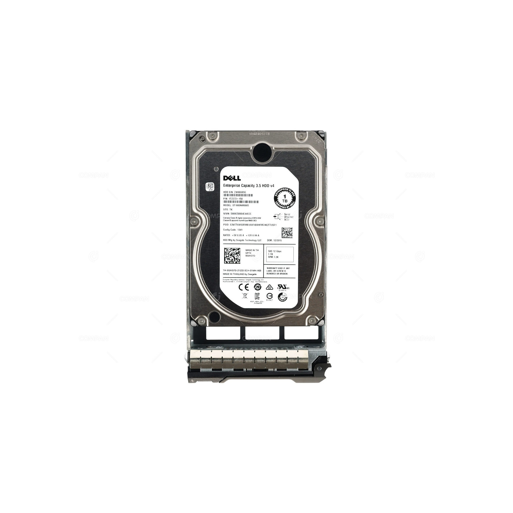 GWD7D DELL HARD DRIVE 1TB 7.2K 12G 3.5 SAS 0GWD7D, ST1000NM0005, 1TZ273-150