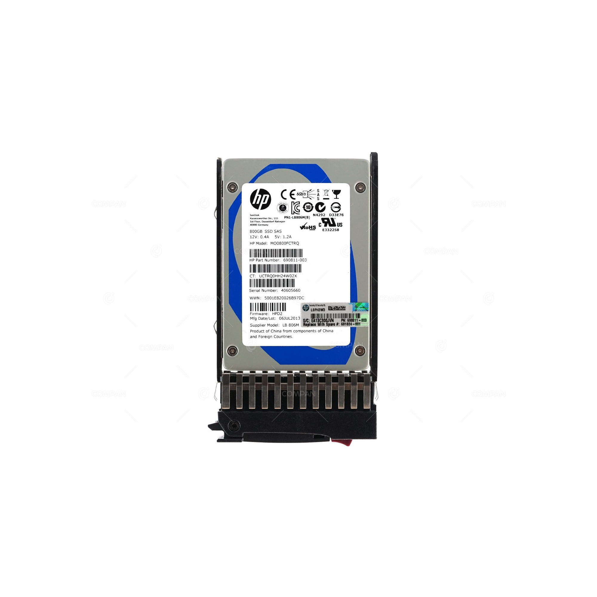691024-001 HP SOLID STATE DRIVE 800GB 6G SAS MLC 2.5 SFF SSD HOT-SWAP 690823-B21, 690823-S21, 690811-003, 691024-001, MO0800FCTRQ
