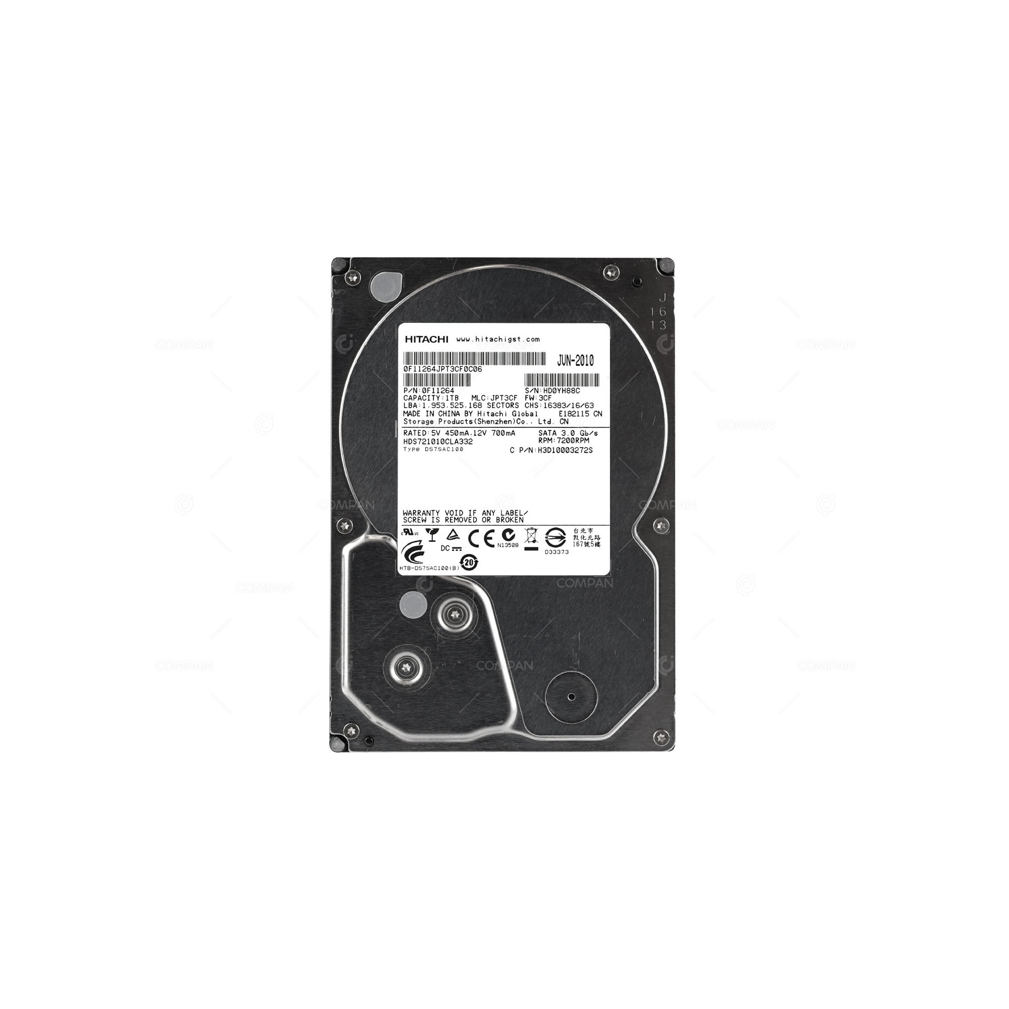 HDS721010CLA332 HITACHI HARD DRIVE 1TB 7.2K 3G SATA 3.5 LFF 0F11264, H3D10003272S