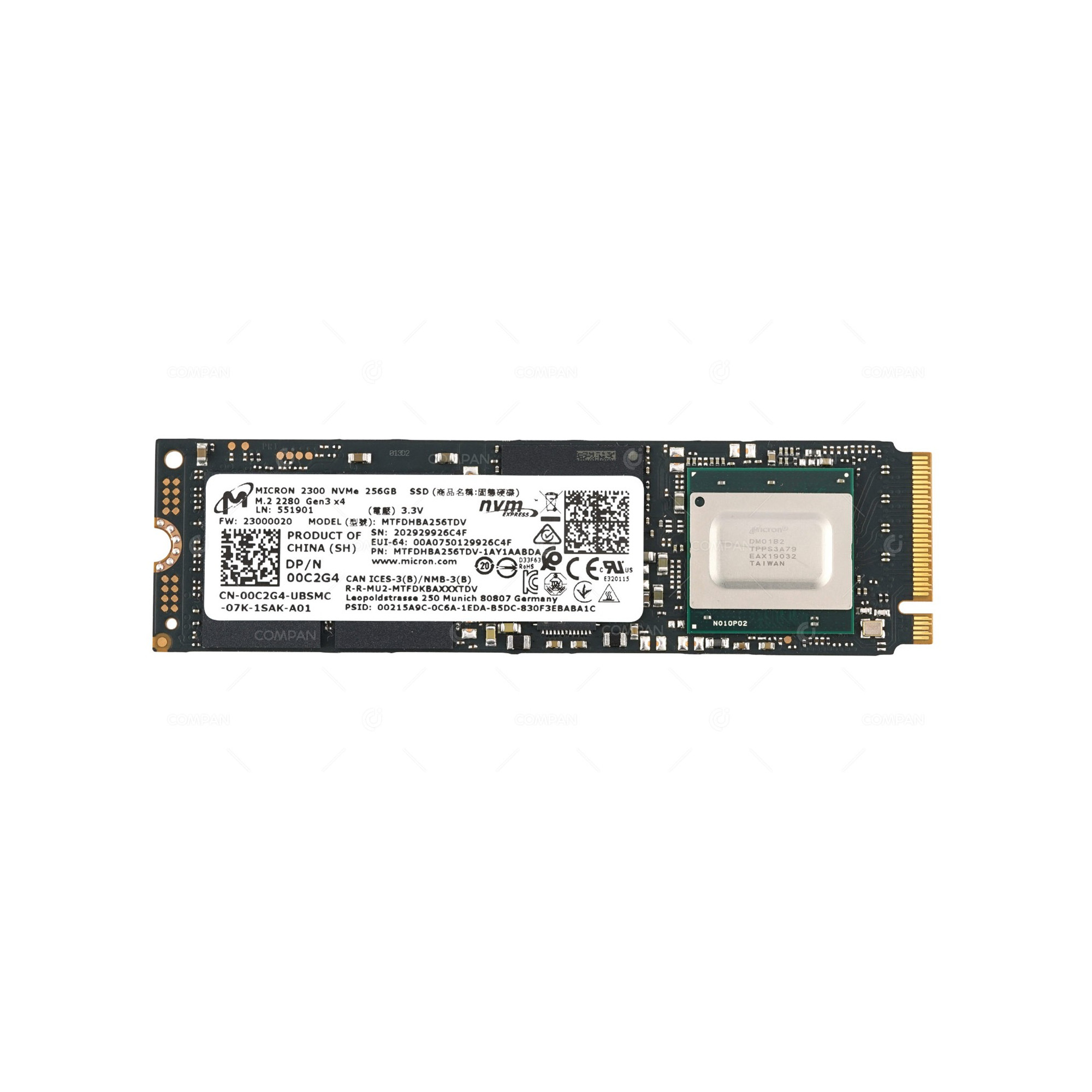 0C2G4 MICRON SOLID STATE DRIVE 256GB 2300 NVME M.2 2280 GEN 3X4 SSD 00C2G4, MTFDHBA256TDV, MTFDHBA256TDV-1AY1AABDA