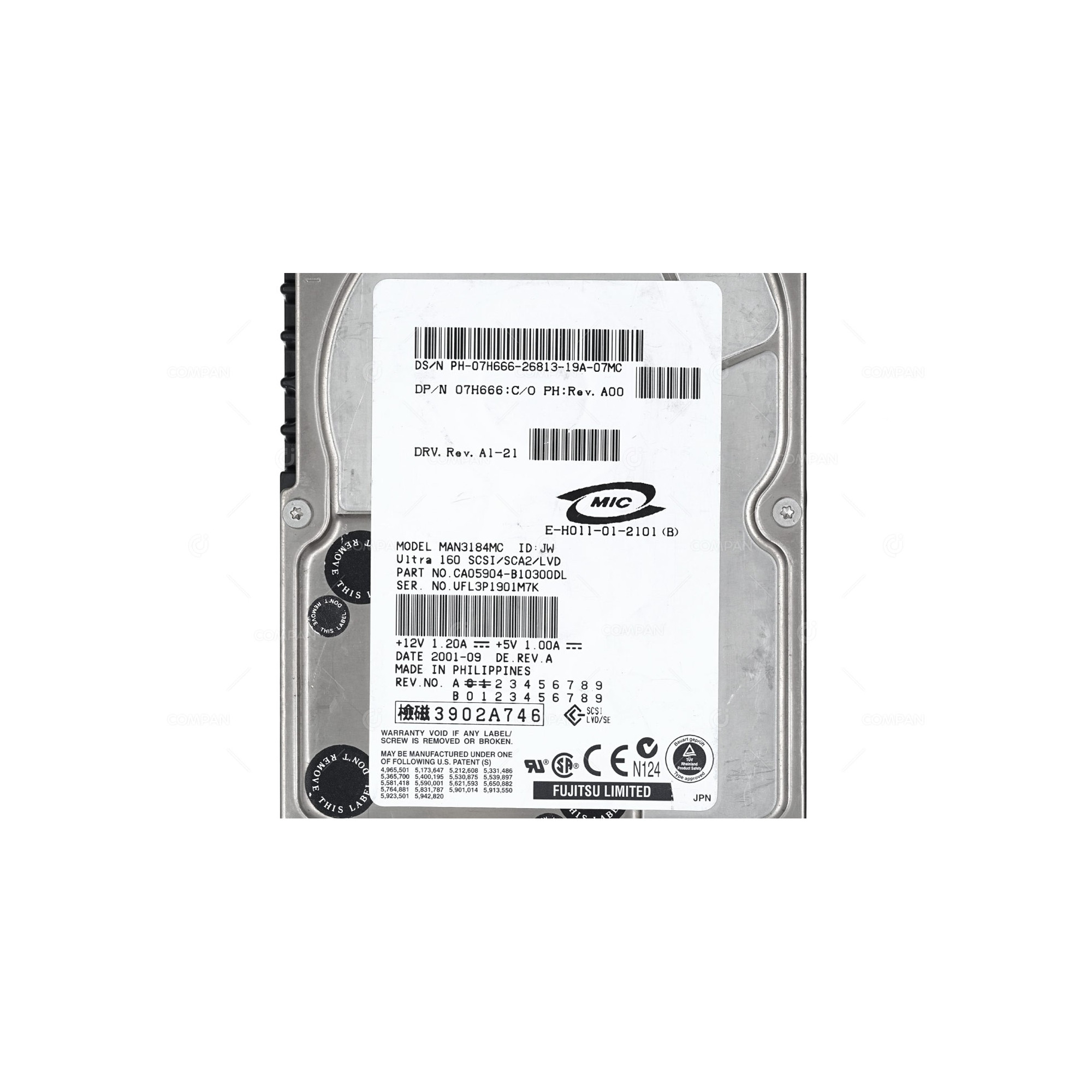 7H666 DELL HARD DRIVE 18GB 10K U160 3.5 SCSI 07H666