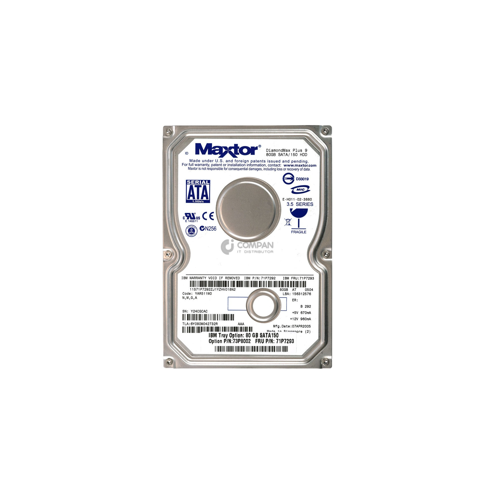 Product Type: Intern (Server) Storage Capacity: 80 GB Form Factor: 3,5" Brand: IBM Interface: SATA Compatible With: SERVER