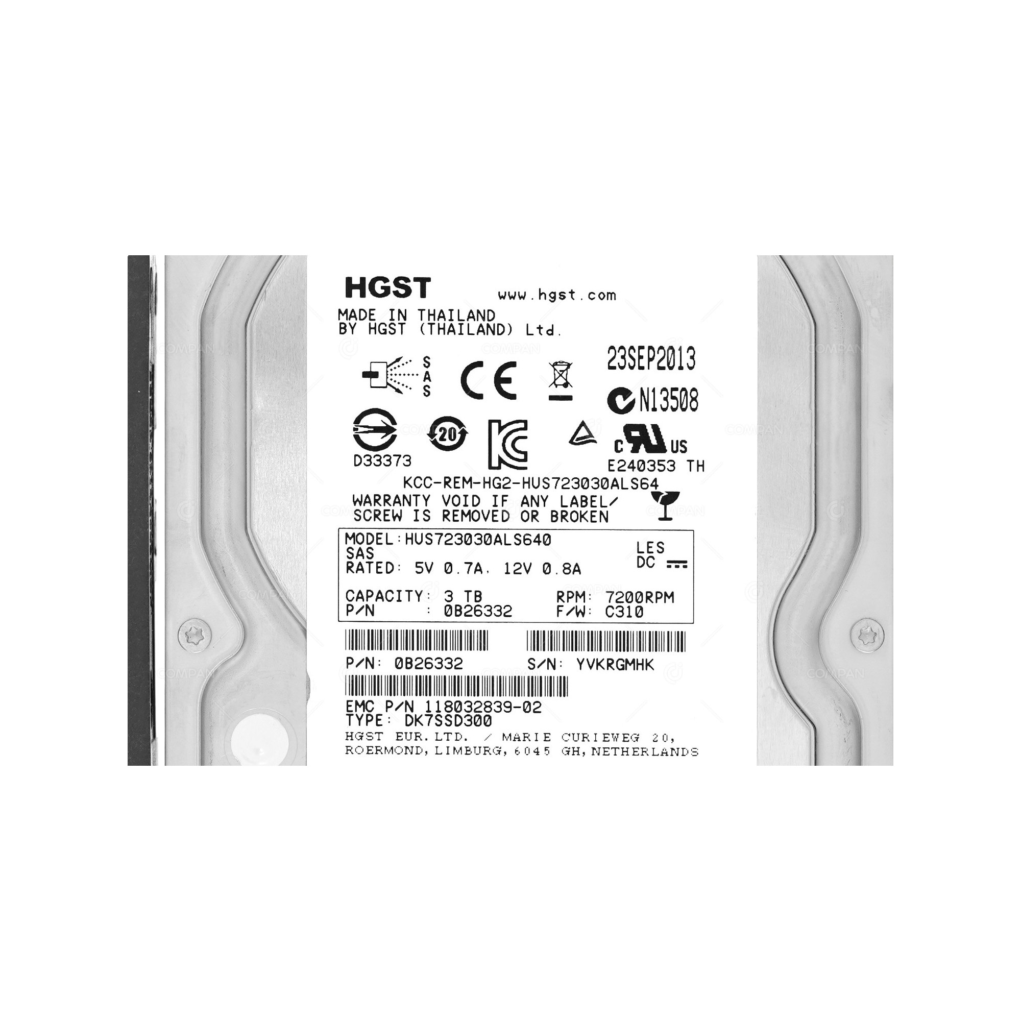 005049571 EMC 3TB 7.2K 6G SAS 3.5" LFF HARD DRIVE 0B26332