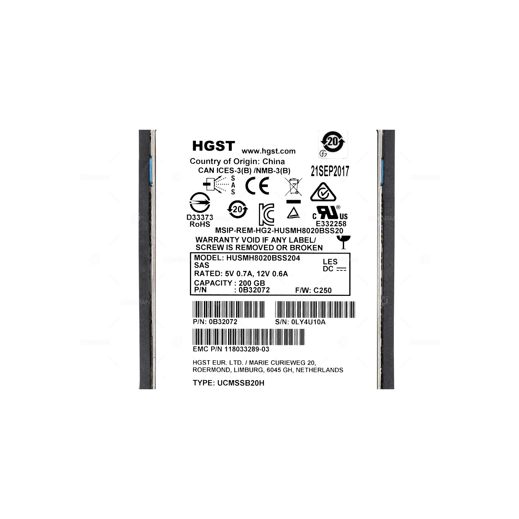 005051585 EMC SSD 200GB 6/12G EFD SAS 2.5 SFF HOT-SWAP FOR UNITY 300F HUSMH8020BSS200, 118033289-03, 0B32072